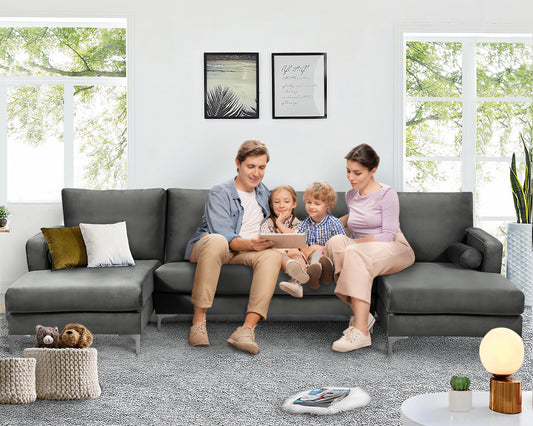 Sectional Sofa with Two Pillows, U-Shape Upholstered Couch with Modern Elegant Velvet for Living Room Apartment