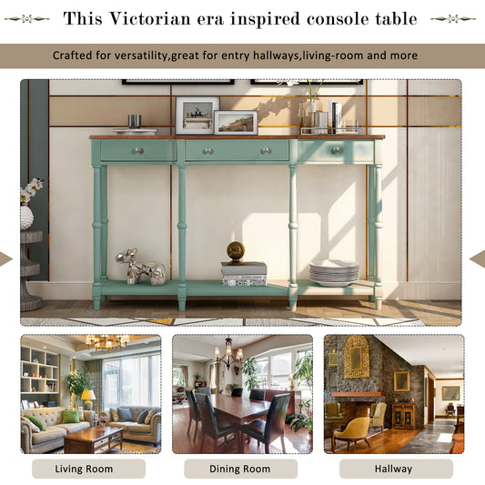 Solid Wood Console Table, Classic Entryway Table with Storage Shelf and Drawer for Home
