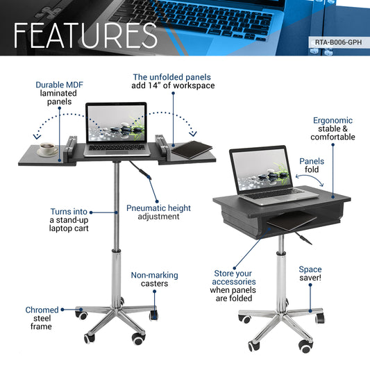 Techni Mobili Folding Table Laptop Cart, Graphite