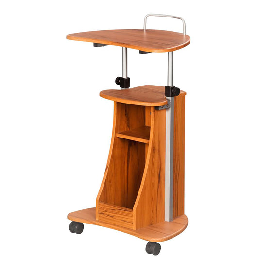 Techni Mobili Sit-to-Stand Rolling Adjustable Height Laptop Cart With Storage, Woodgrain