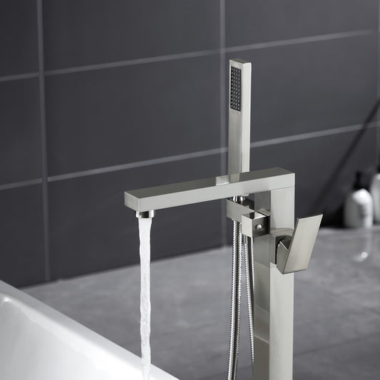 TrustMade Single Handle Floor Mounted Freestanding Tub Filler with Handshower, Brushed Nickel - S01