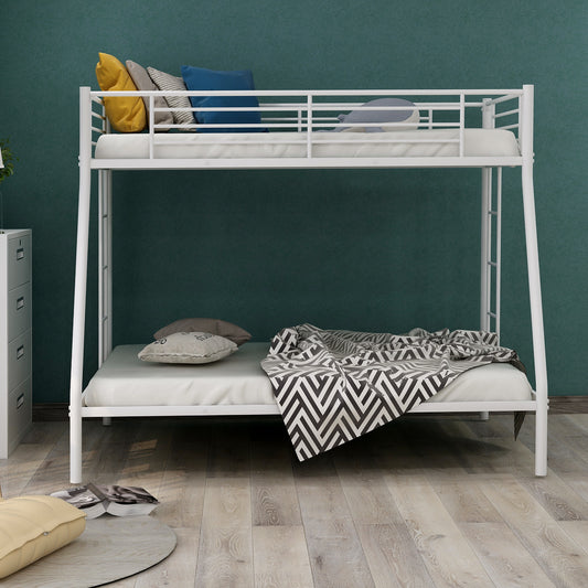 Twin over Twin Metal Bunk Bed, Low Bunk Bed with Ladder, White(New)