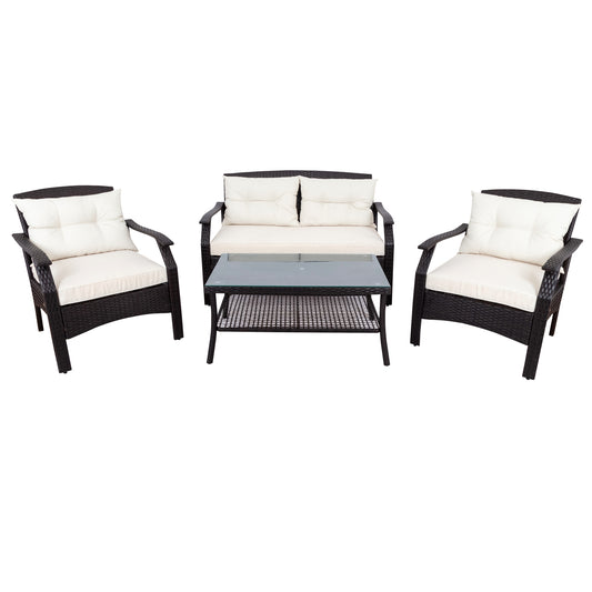 U_Style 4 Piece Rattan Sofa Seating Group with Cushions, Outdoor Ratten sofa