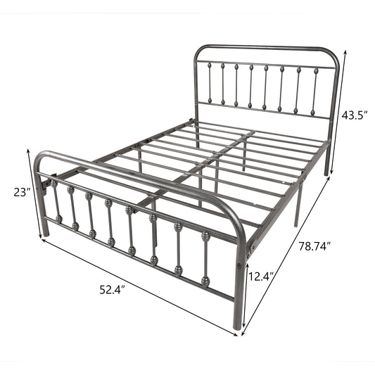 Victorian Vintage Style Platform Metal Bed Frame Foundation Headboard Footboard Heavy Duty Steel Slabs Full BlackSilver