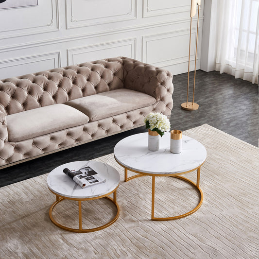 Modern Nesting coffee table,golden metal frame with marble color top-31.5&