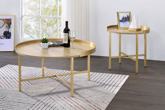 Mithea End Table, Oak Table Top & Gold Finish 82337