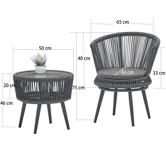Modern outdoor table and chair woven-belt rope wicker hand-make weaving furniture Swivel Rope Chair 3PCS Rattan Chair