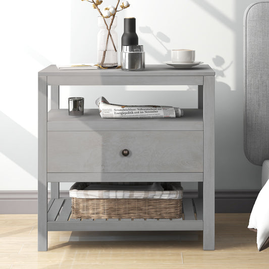 Modern Wooden Nightstand with Drawers Storage for Living Room/Bedroom, Gray(Expected arrival time 8.20)