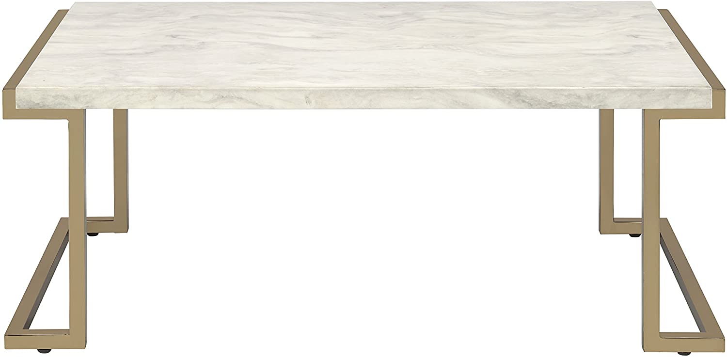 Boice II Coffee Table in Faux Marble & Champagne 82870
