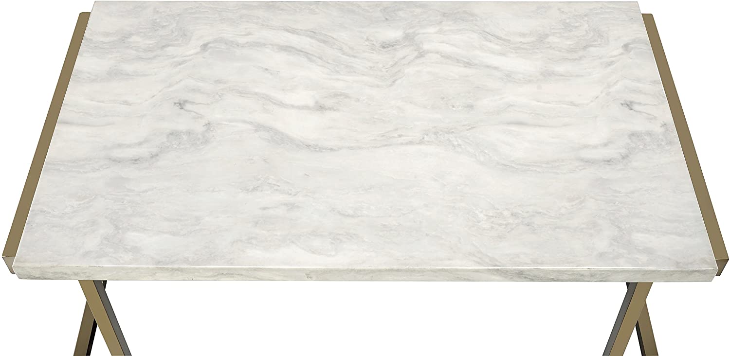 Romance : The Boice II occasional table set features a trending combination of sleek and contemporary style, with faux marble top and champagne finish metal base. The modern lines of the base with its open return base and simple form top, make for an modern feel and show off key elements of modern.