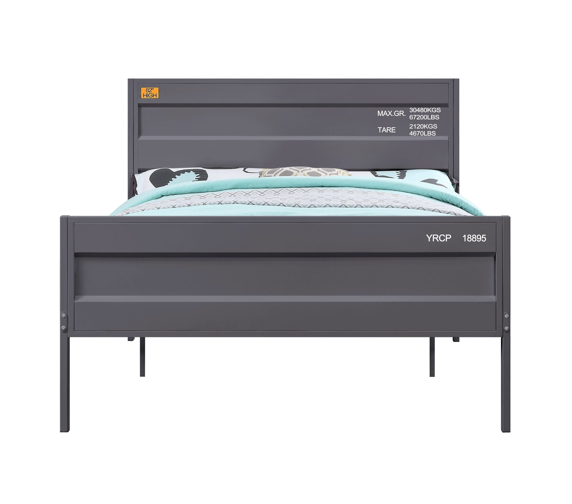 Romance : The Cargo youth bed is the perfect addition to any child’s room. This contemporary container themed metal bed features a panel headboard with low profile footboard, crafted with an industrial look that is an perfect match for your bedroom. The bed is accented with straight legs and a recessed panel design in an understated finish. This fashionable bed will accent your other bedroom furniture, transforming a room from ordinary into something playful and unique.