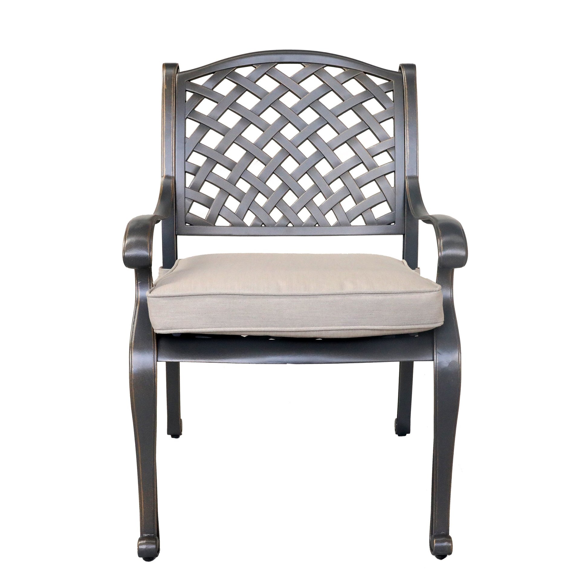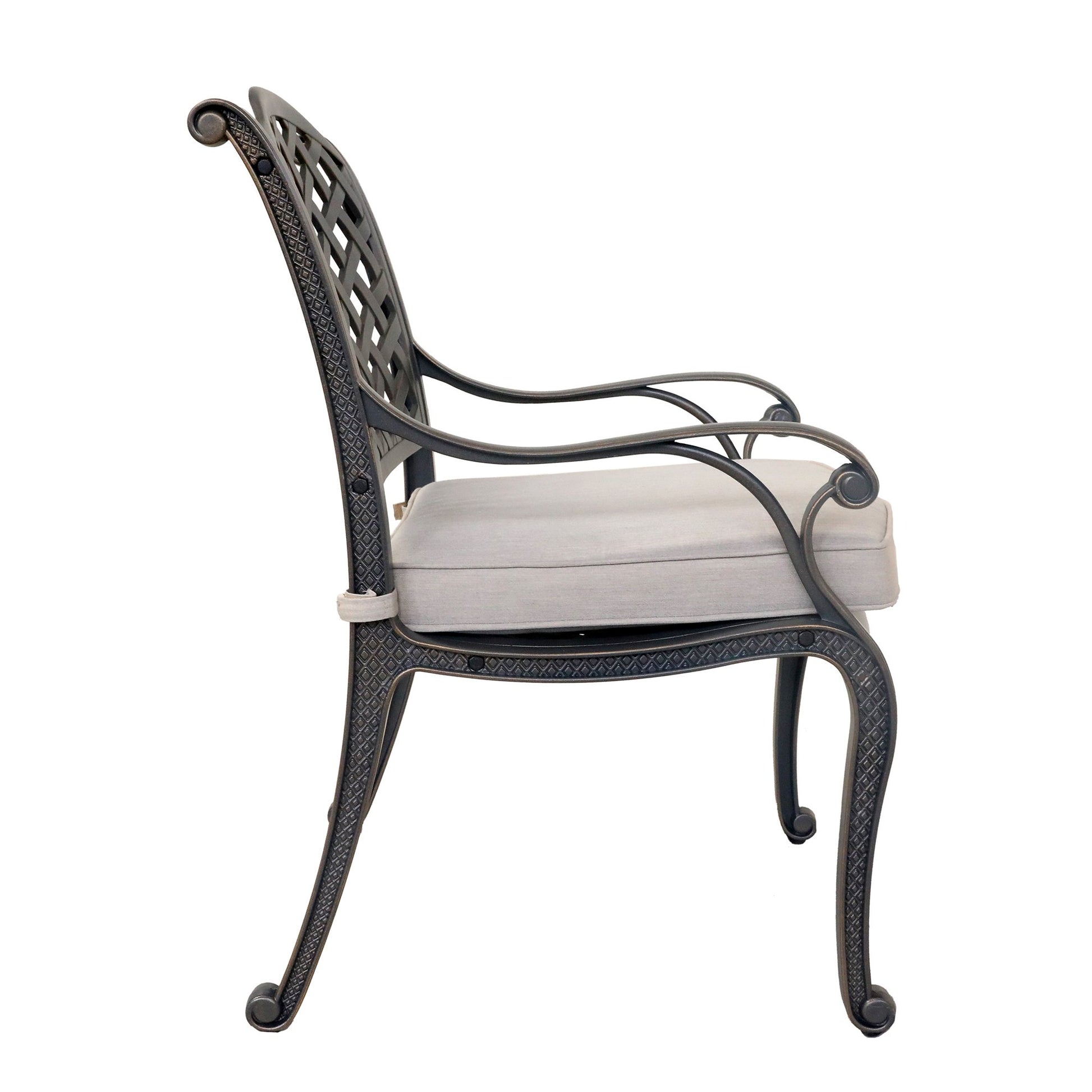 Versatility and portability meet classic styling in the Manhattan Collection. Coming in aged bronze or gunmetal, these are our standard Manhattan dining chairs. They feature an aluminum frame that is rust-resistant and cushions that are tailored in our fade and stain-resistant fabrics.