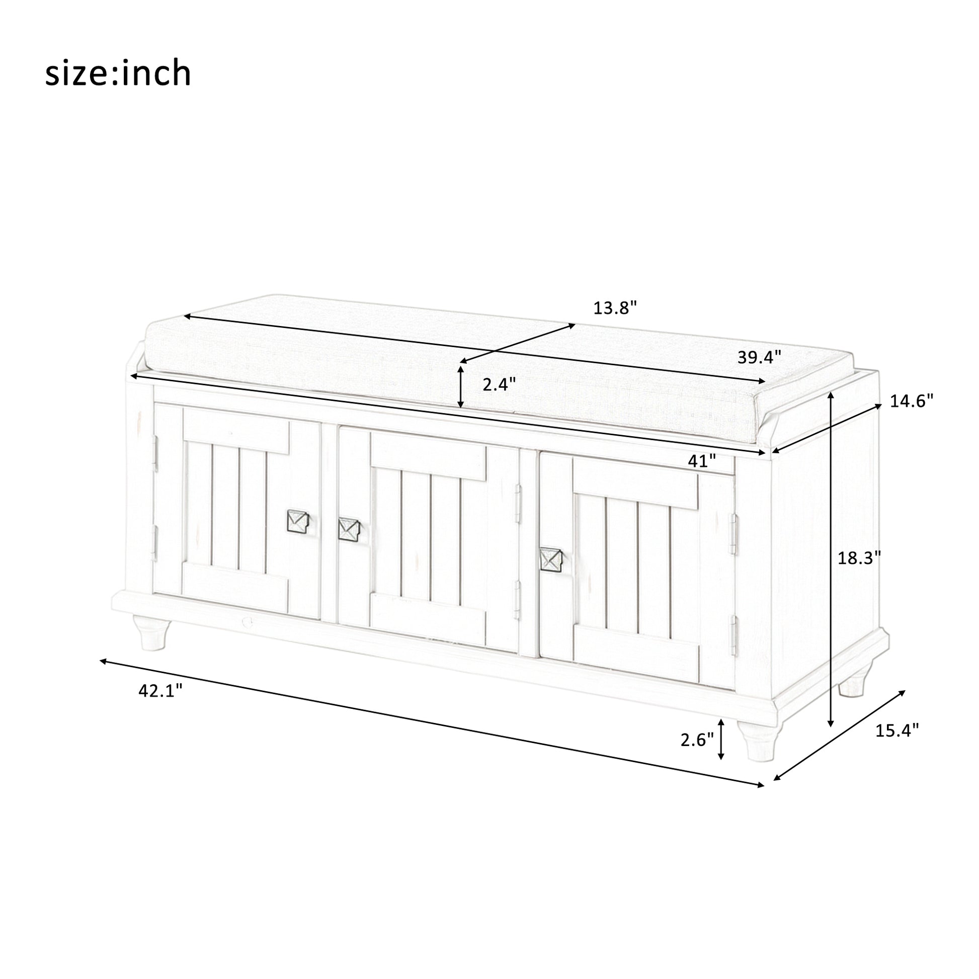 Homes Collection Wood Storage Bench with 2 Cabinets