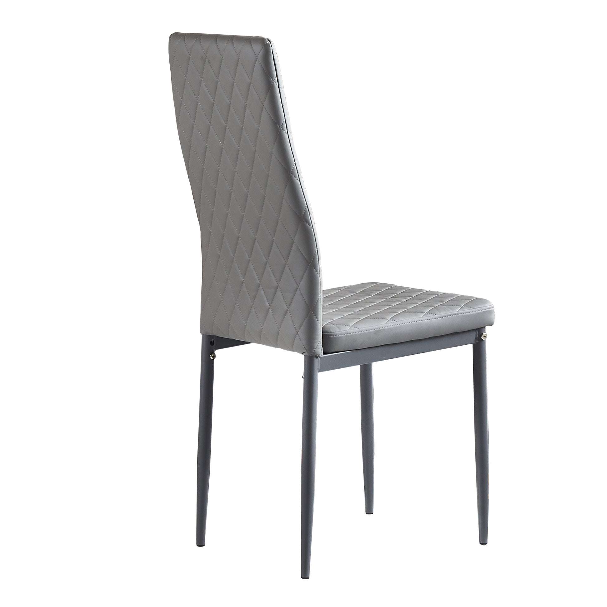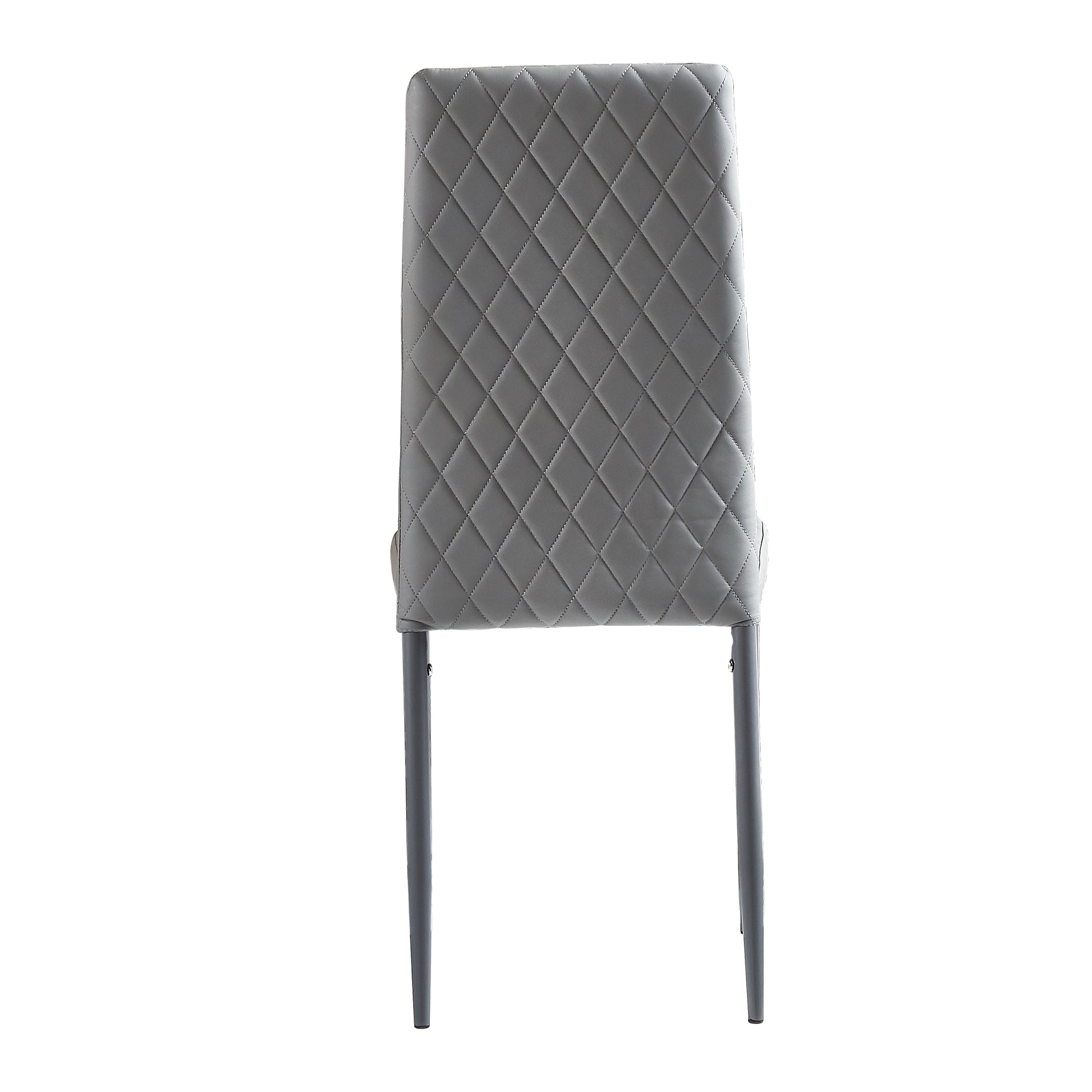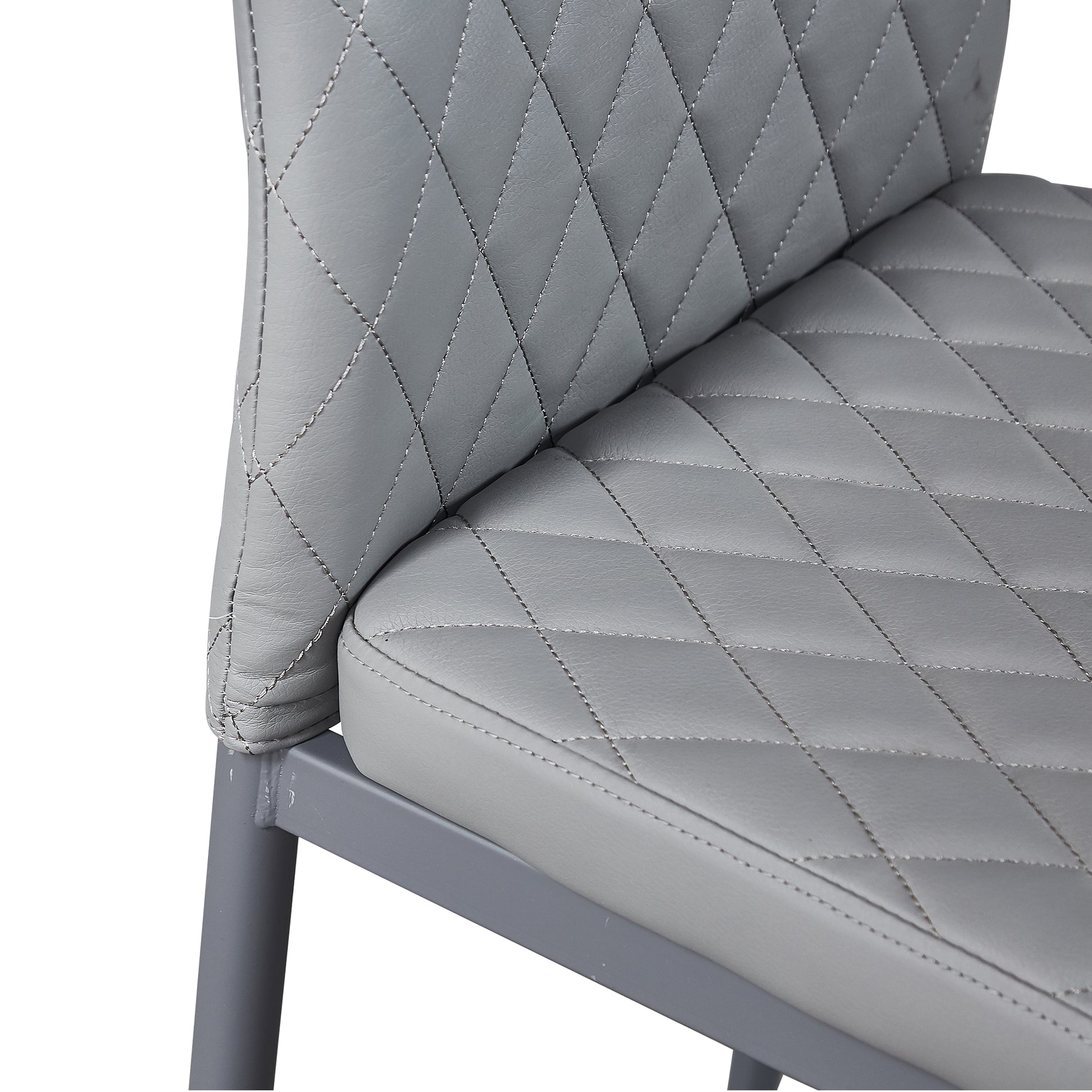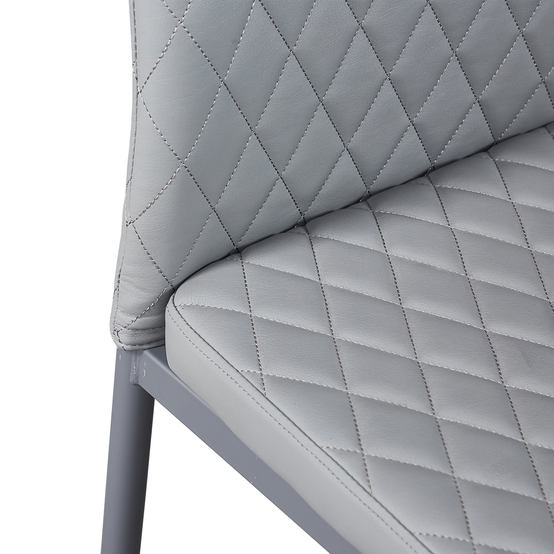 Light Gray modern minimalist dining chair fireproof leather sprayed metal pipe diamond grid pattern restaurant home conference chair set of 4