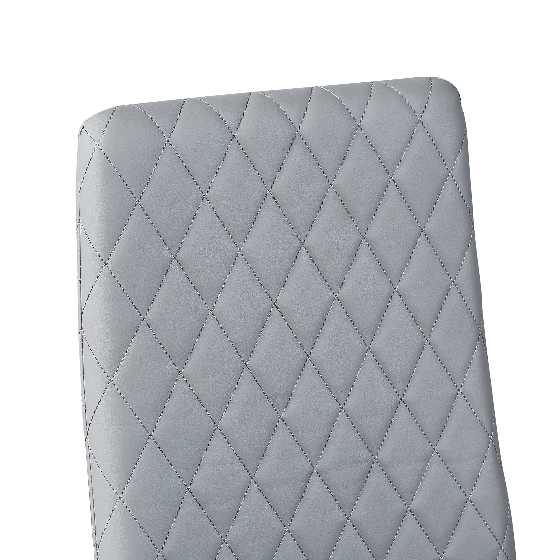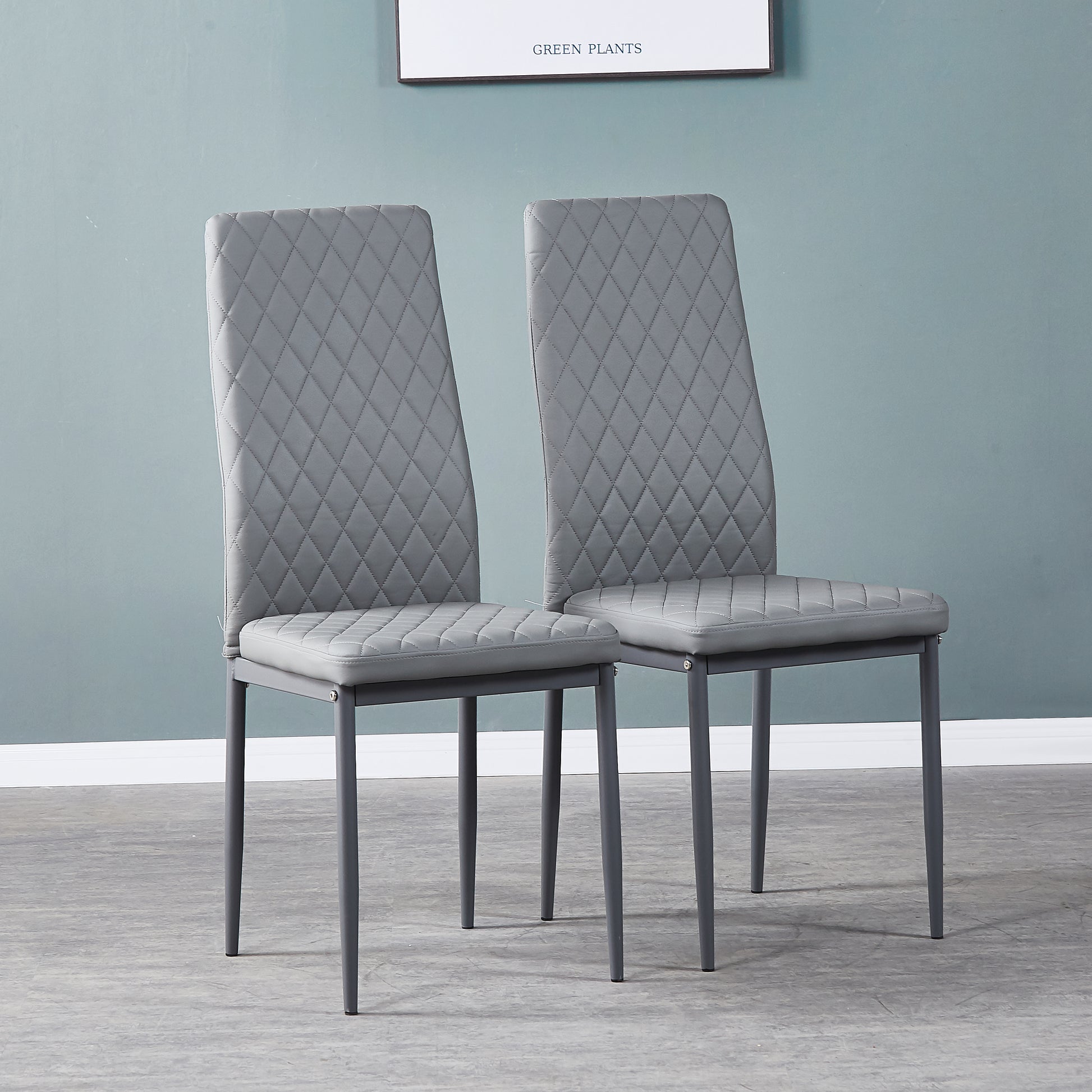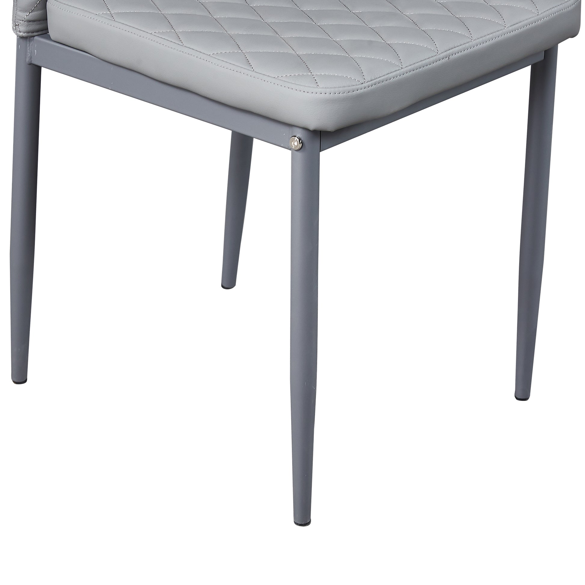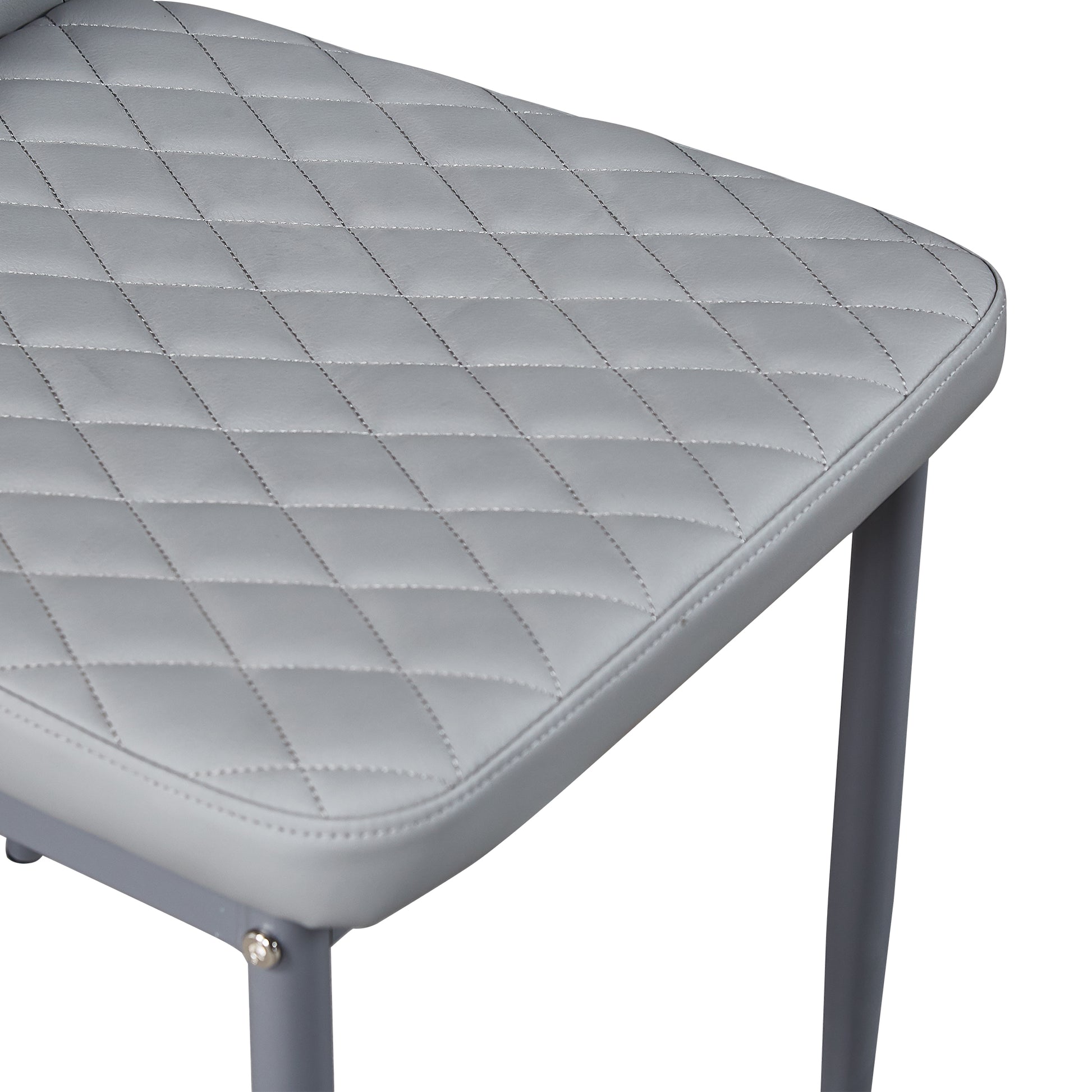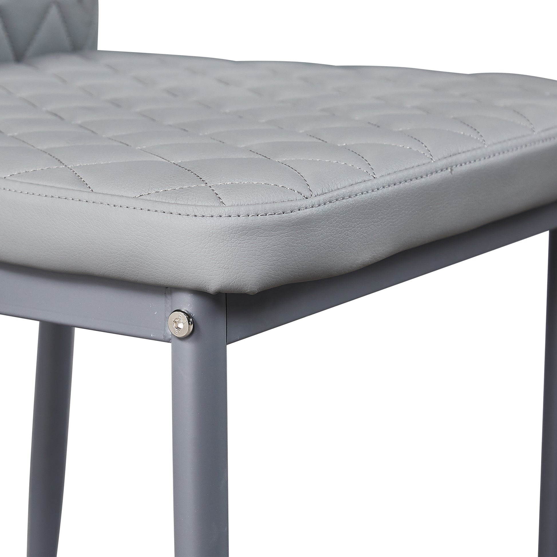 Light Gray modern minimalist dining chair fireproof leather sprayed metal pipe diamond grid pattern restaurant home conference chair set of 4
