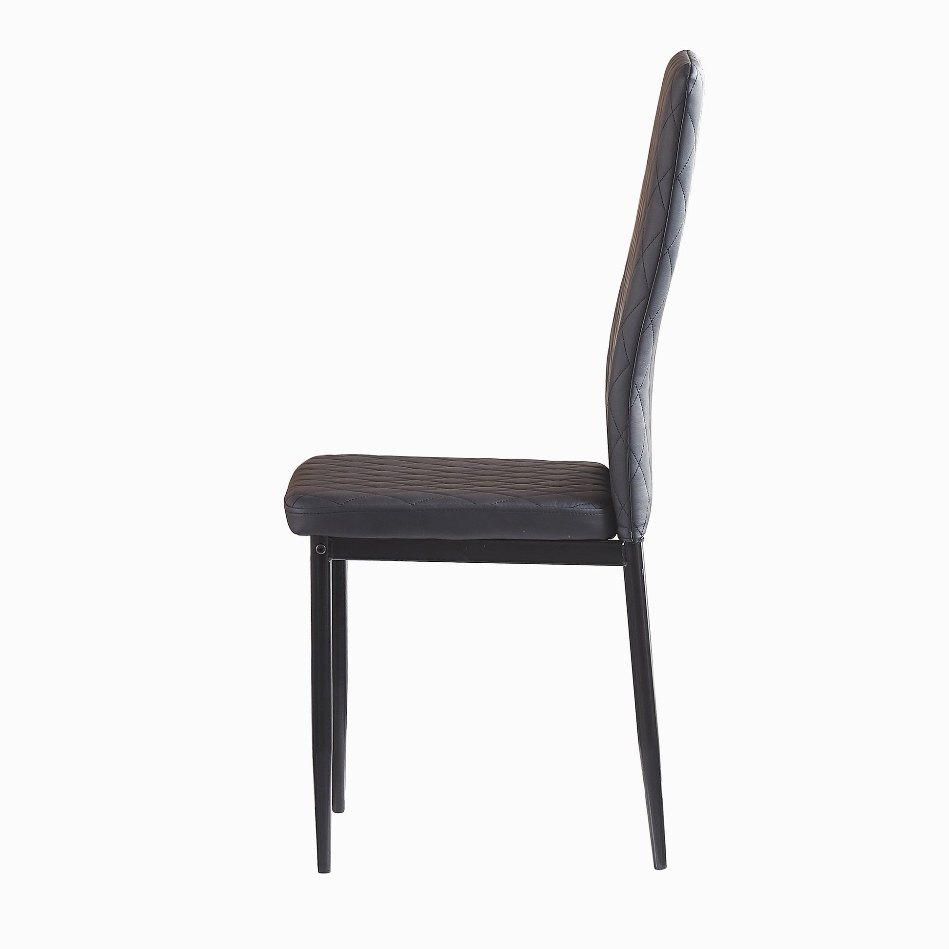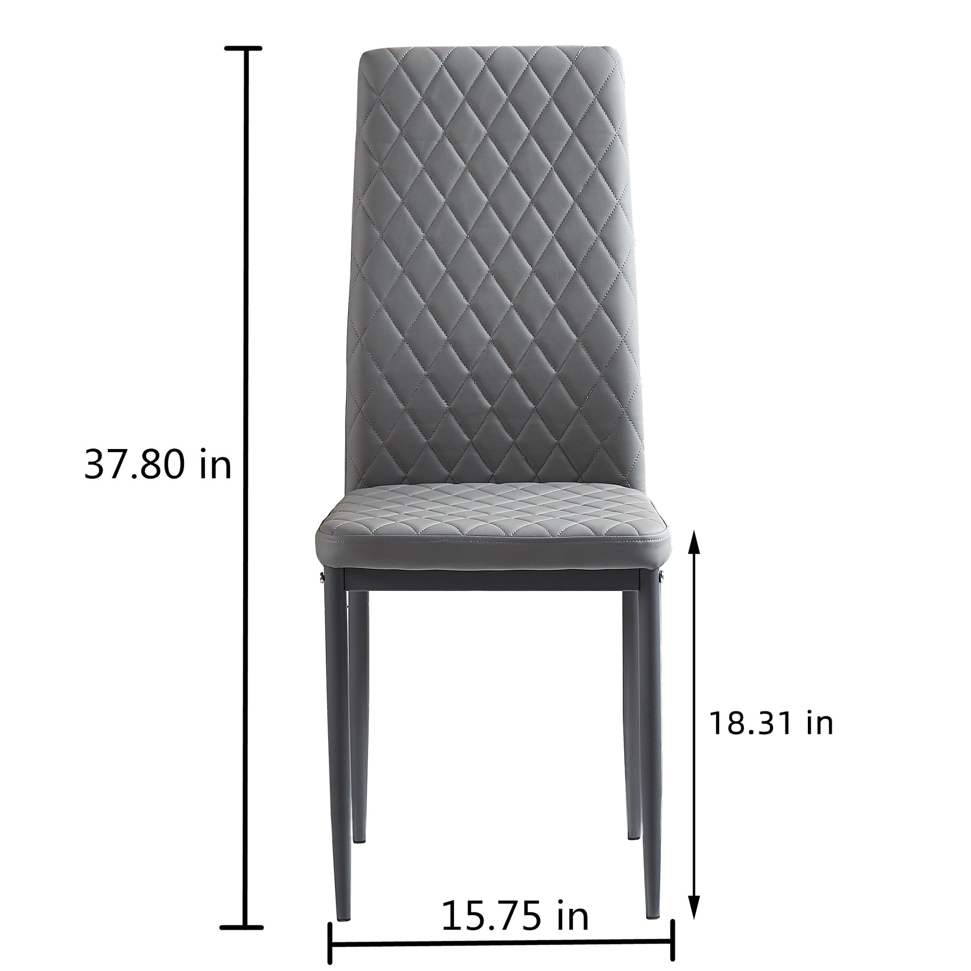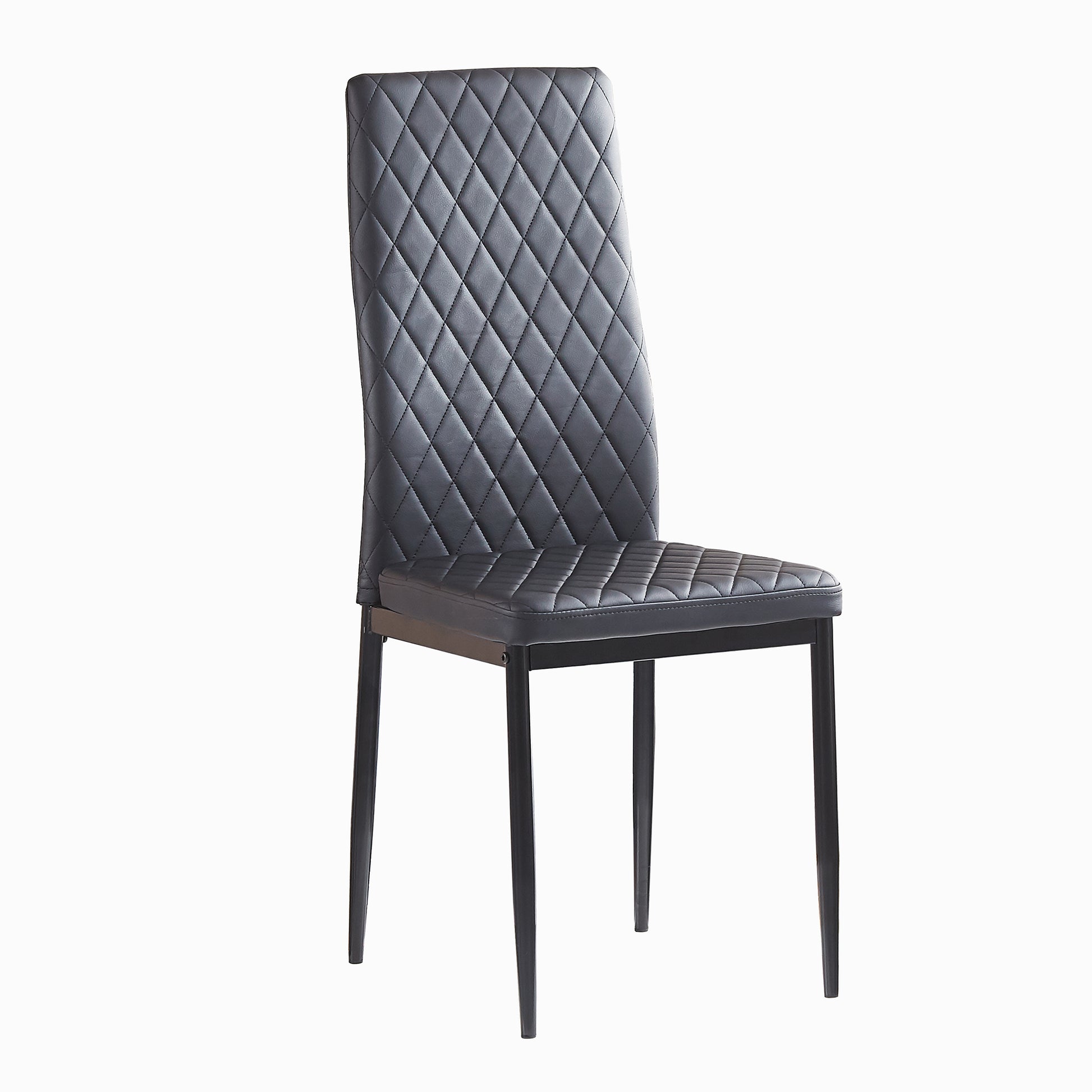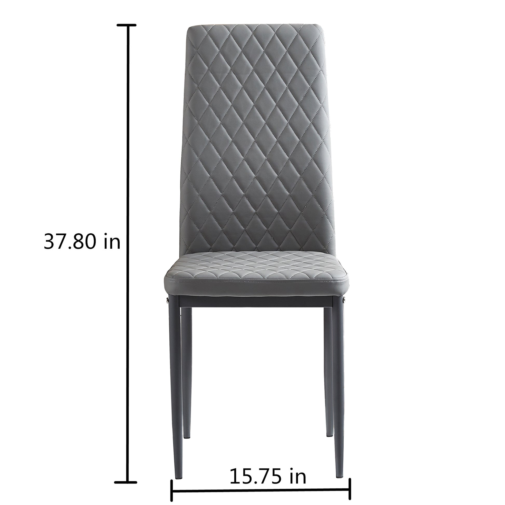 Light Gray modern minimalist dining chair fireproof leather sprayed metal pipe diamond grid pattern restaurant home conference chair set of 4