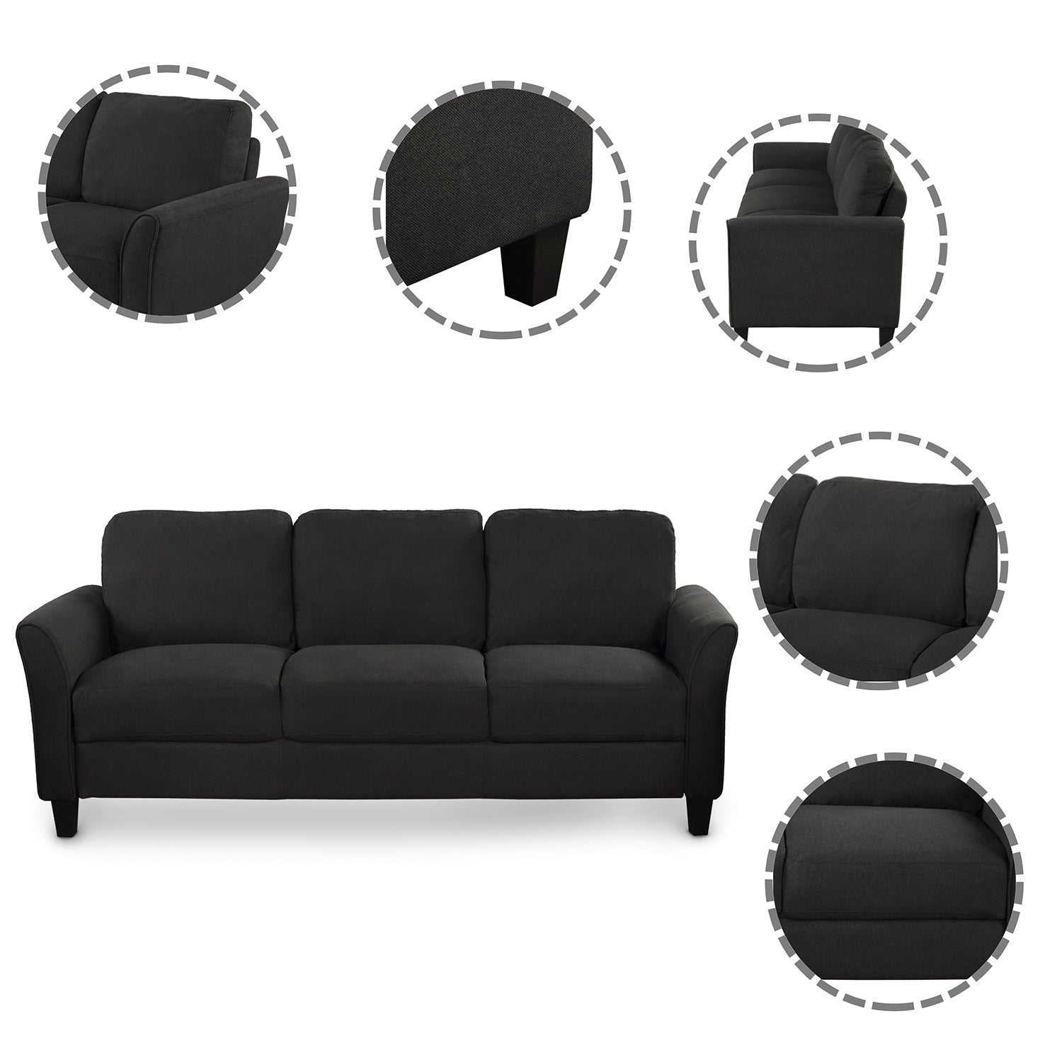 This sofa is the perfect cozy spot for a movie night, game night, or curl-up-with-a-great-book night. The cushions and pillows are upholstered in soft fabric and padded with thick foam, allowing you and guests to enjoy yourselves while watching TV on it comfortably. Features stable side armrests that act as both a support system and prevents small children from falling off. Add this perfect addition to your lovely home.
