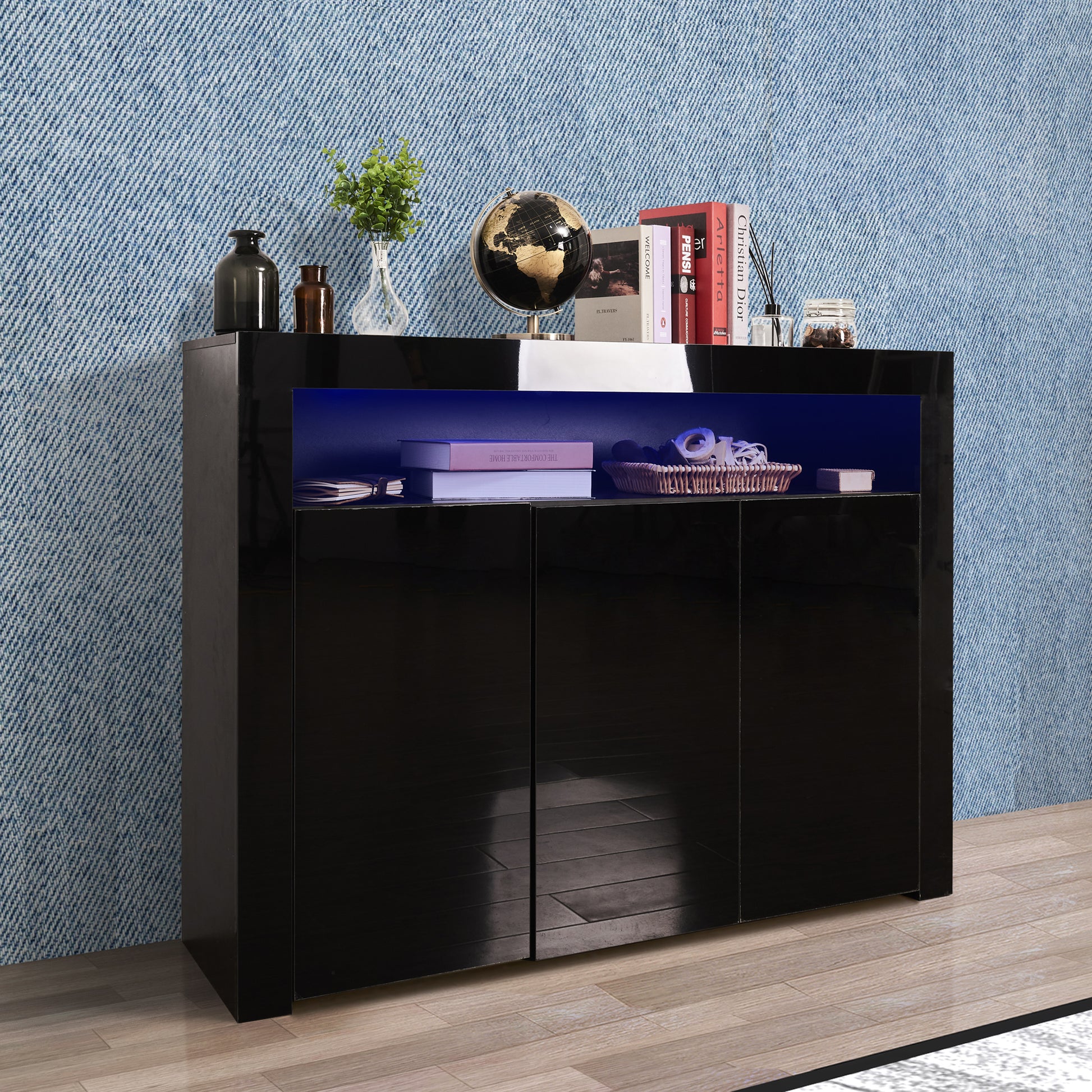 - Multipurpose LED Kitchen Cupboard Storage Buffet: the LED sideboard with multi-colour LED lights, which has 16 colors and 4 lighting effects such as strobe and fade, can change the color of the display through the remote control.