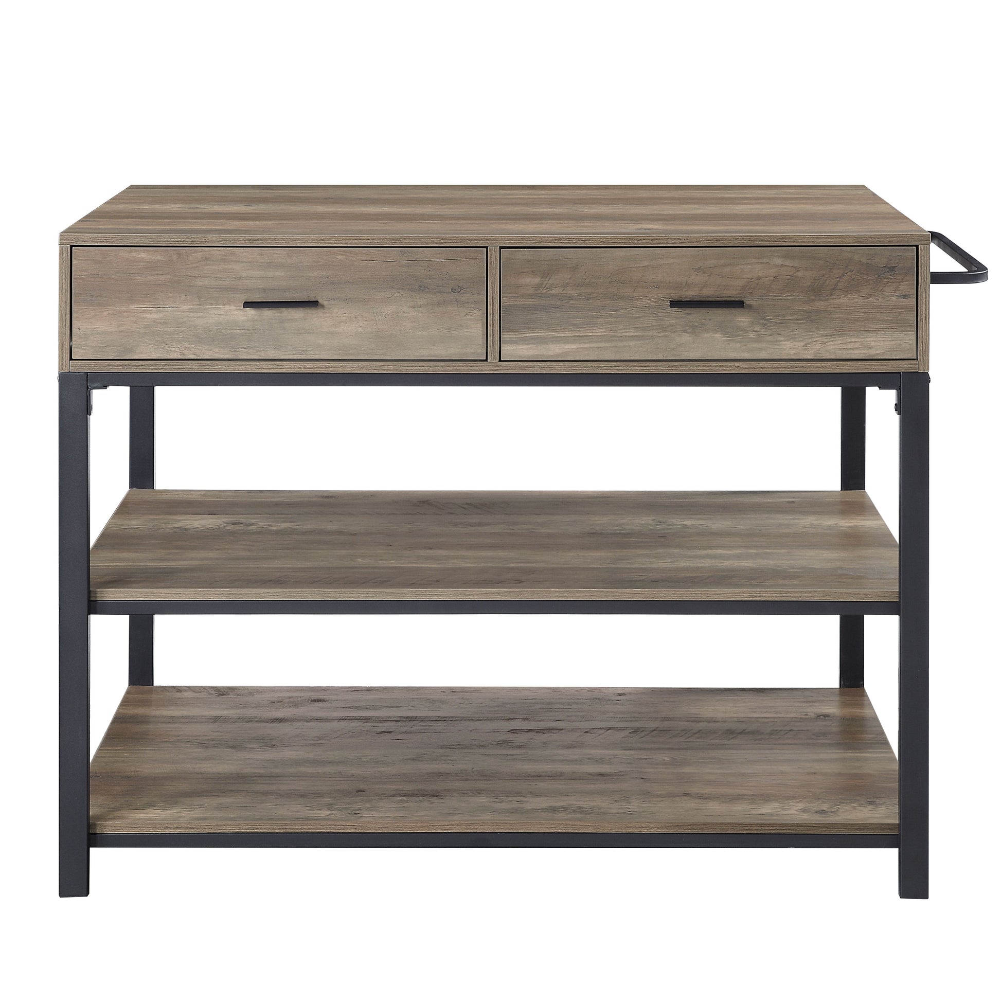 Macaria Kitchen Island, Rustic Oak Black Finish AC00403