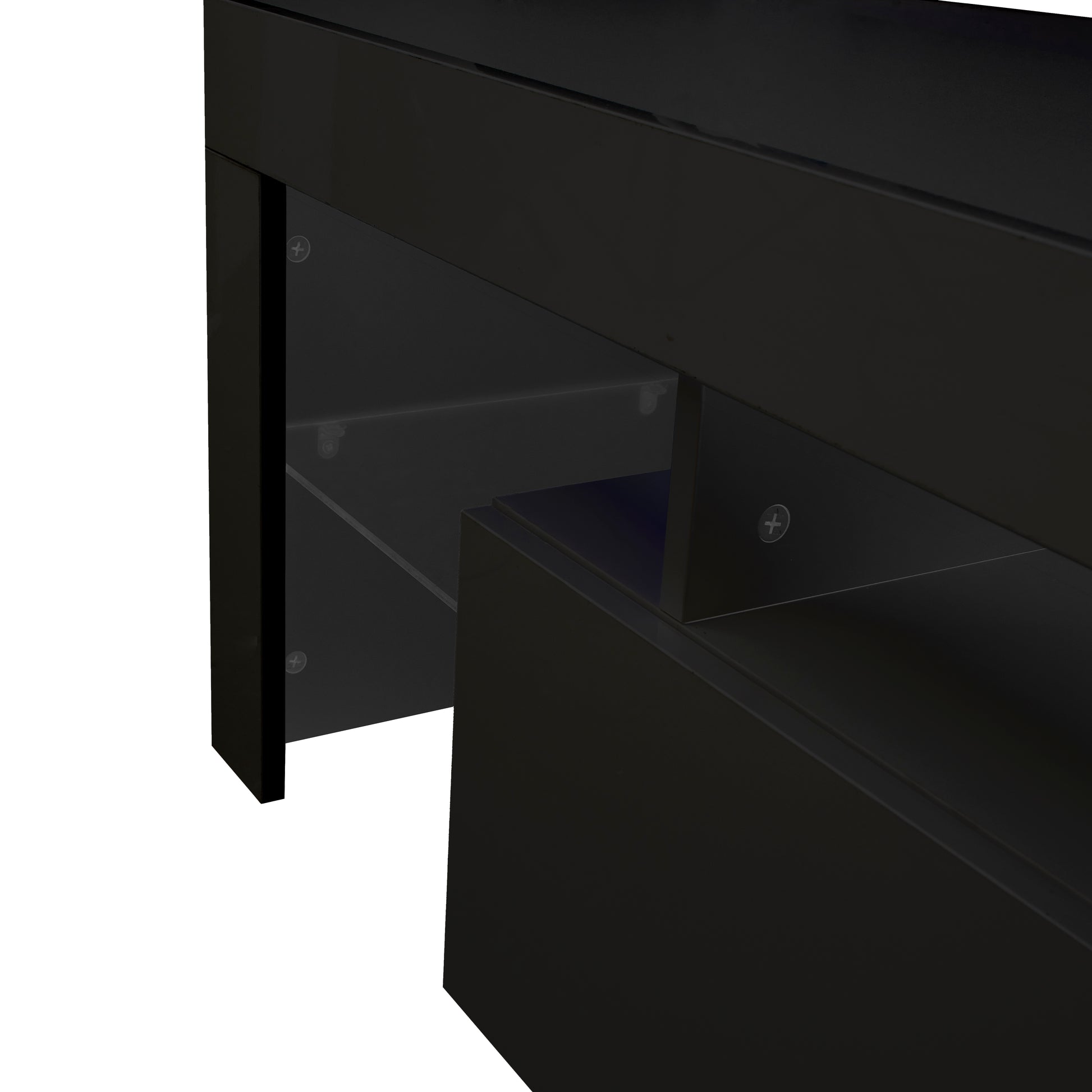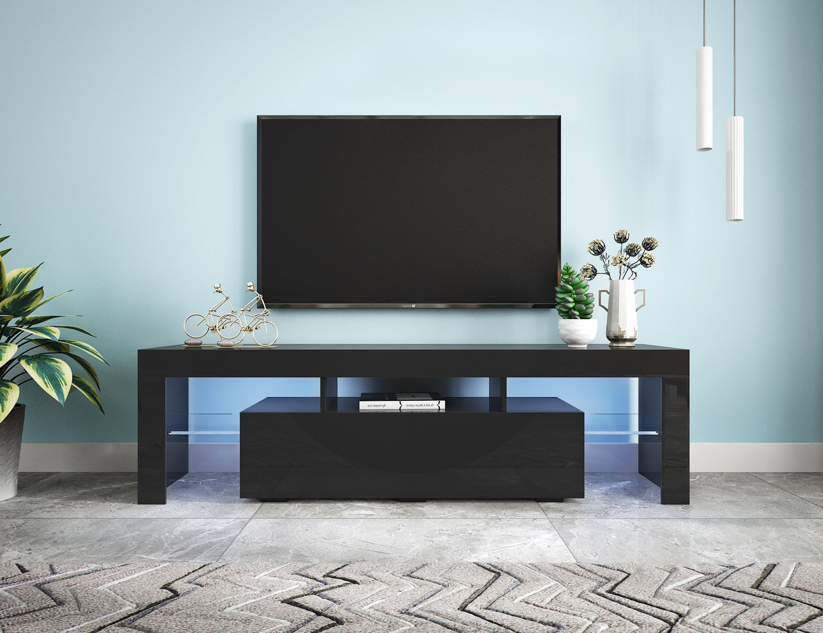 Modern Black TV Stand, 20 Colors LED TV Stand w/Remote Control Lights