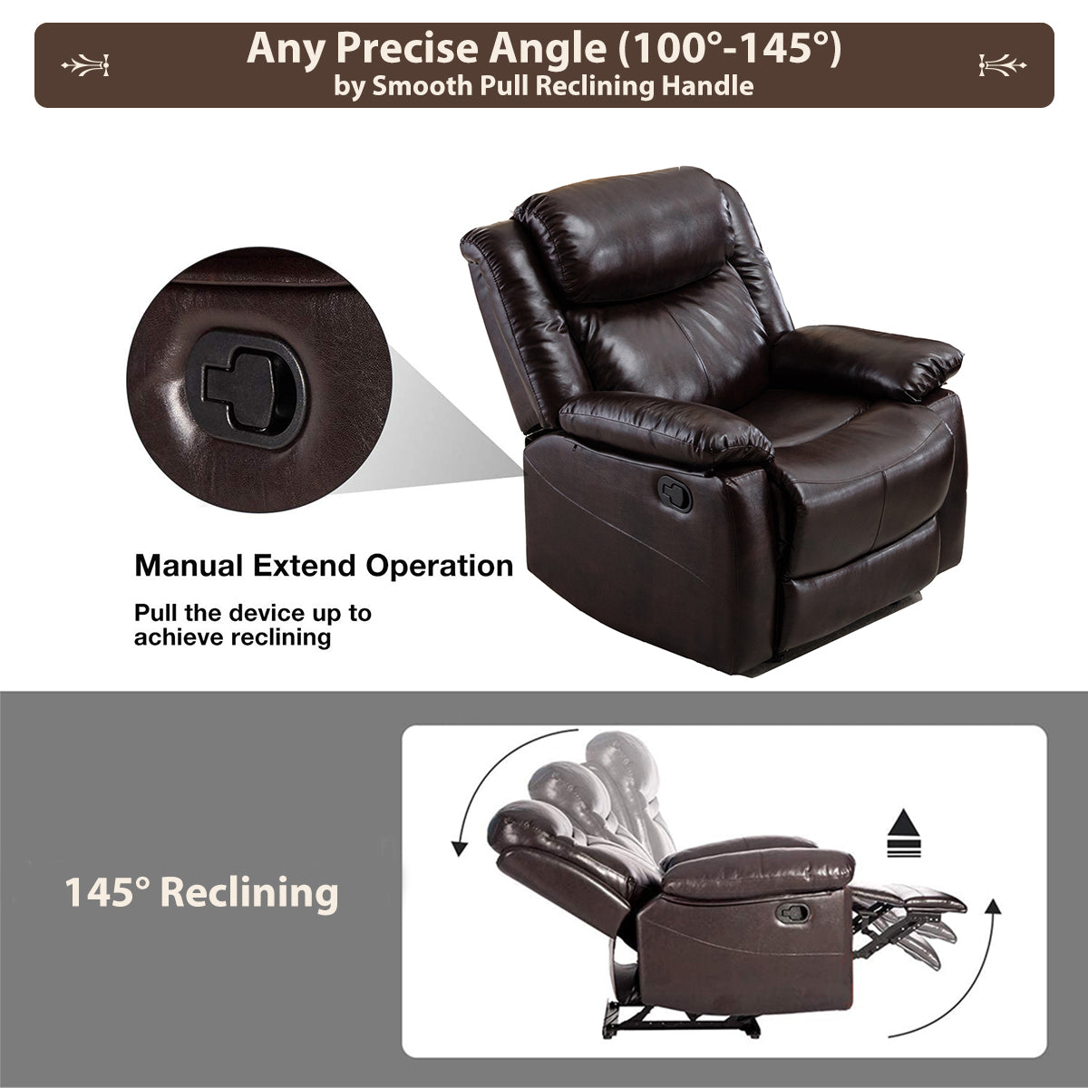 ✔Durability: This contemporary sofa set has been constructed on glued-solid sided wood frame and a reclining steel rail system for long lasting use. It reclines to 145 degrees, extending footrest and reclining feature allows you to fully stretch and relax, ideal for watching television, sleeping and reading.