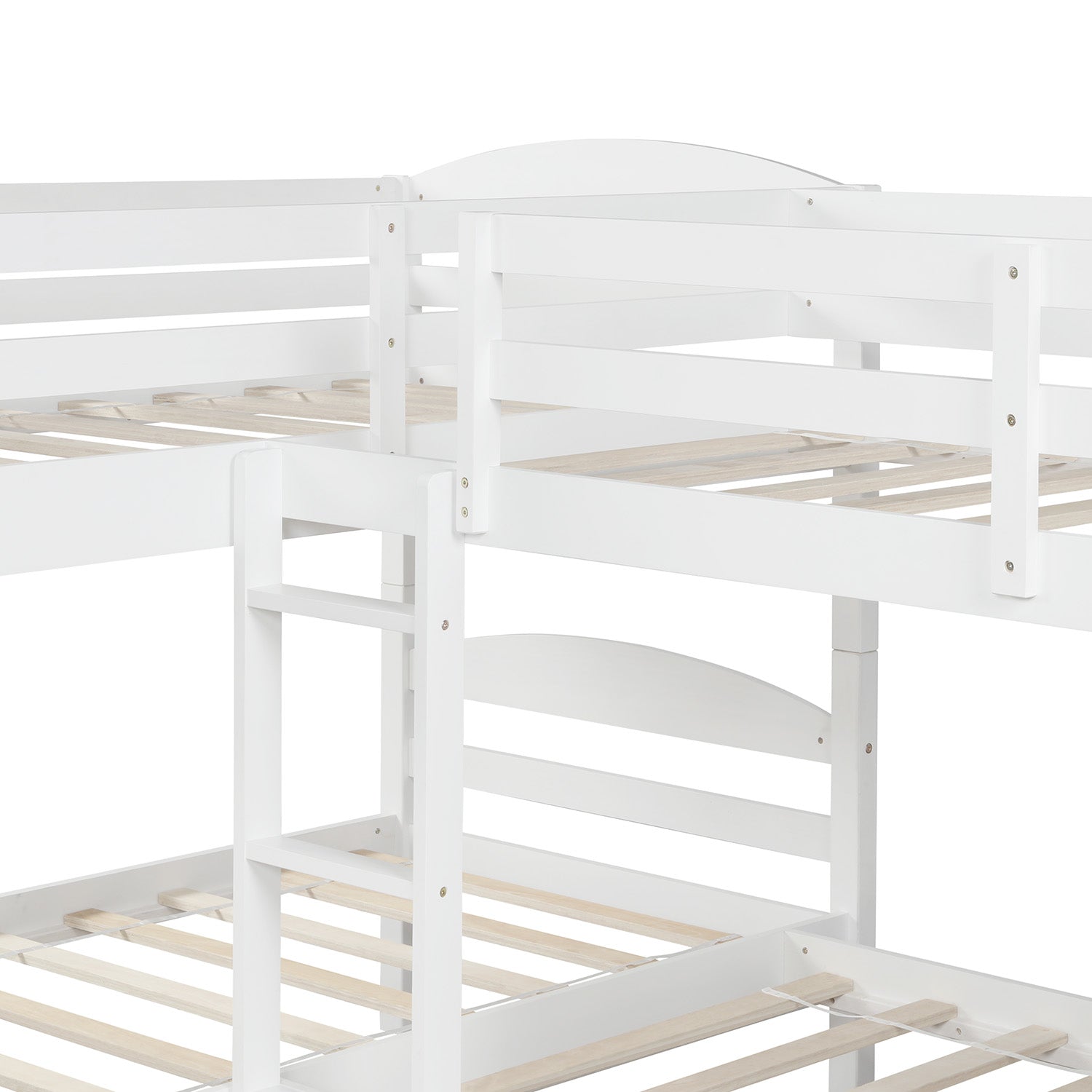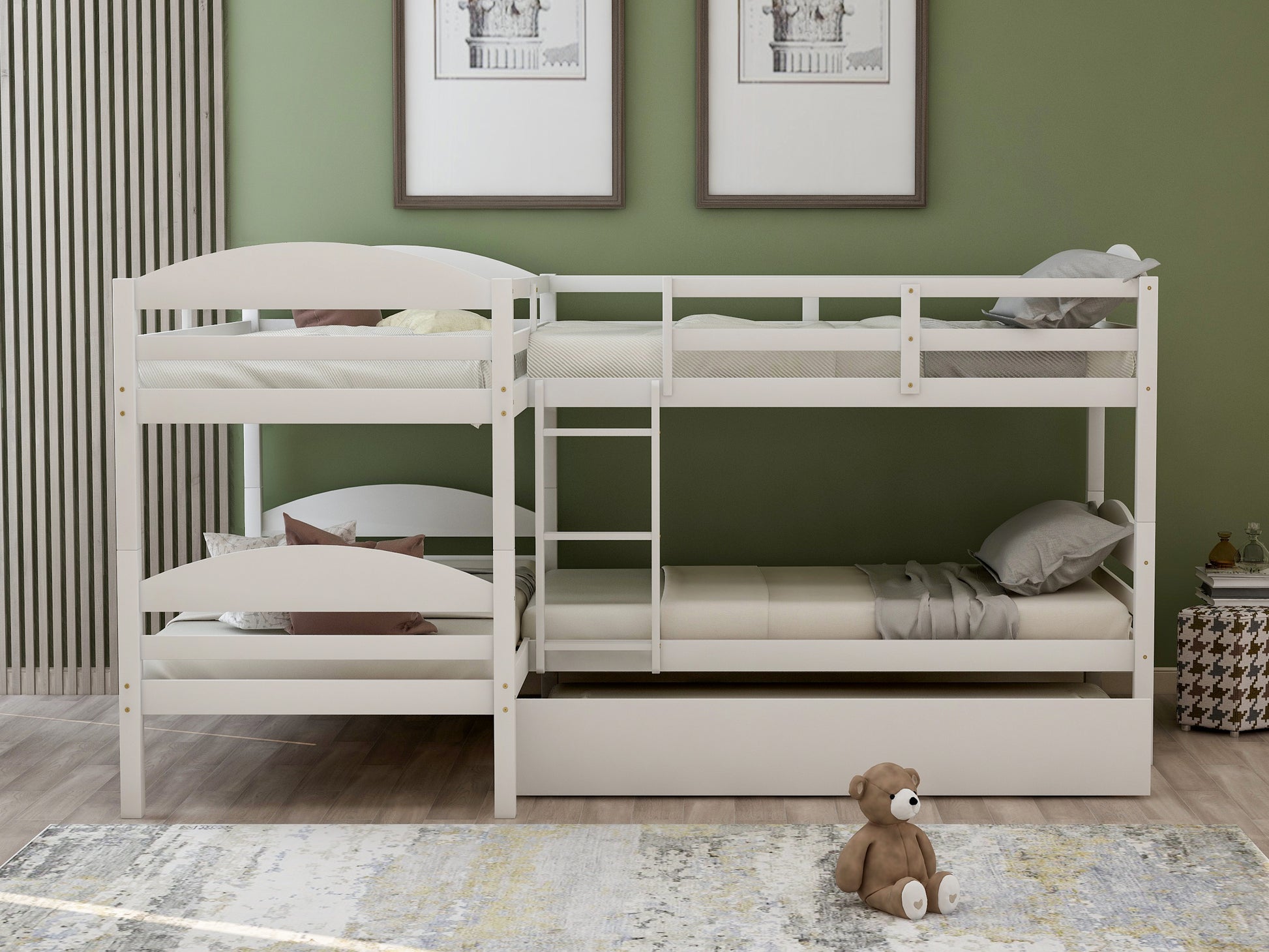 v [Versatility galore] This Twin L-Shaped bunk bed features two twin size upper beds and two twin size bottom beds and one twin size trundle for accommodating your kids or any overnight sleepers. It can also be divided into two L-Shaped Beds for even more convenience, depending on how you want to organize your space. No spring box needed.