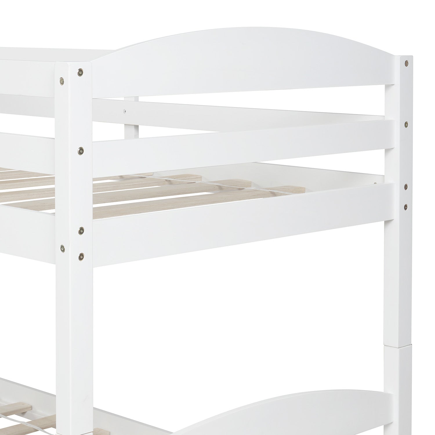 This is a versatile, mission style bunk bed. Constructed of pine these beds are both stylish and durable. These beds are perfect for your family, sleepovers or your extra guest sleeping at your lake house getaway. High-quality, solid pine legs and a strong, durable frame ensures stability and durability for long-term use, and can be separated into two L-Shaped Beds. Slat kit included so box springs are not required. This bunk bed is designed with a clean silhouette and a hue of elegance. It suits all styles of home decoration, and completes the look of any bedroom.