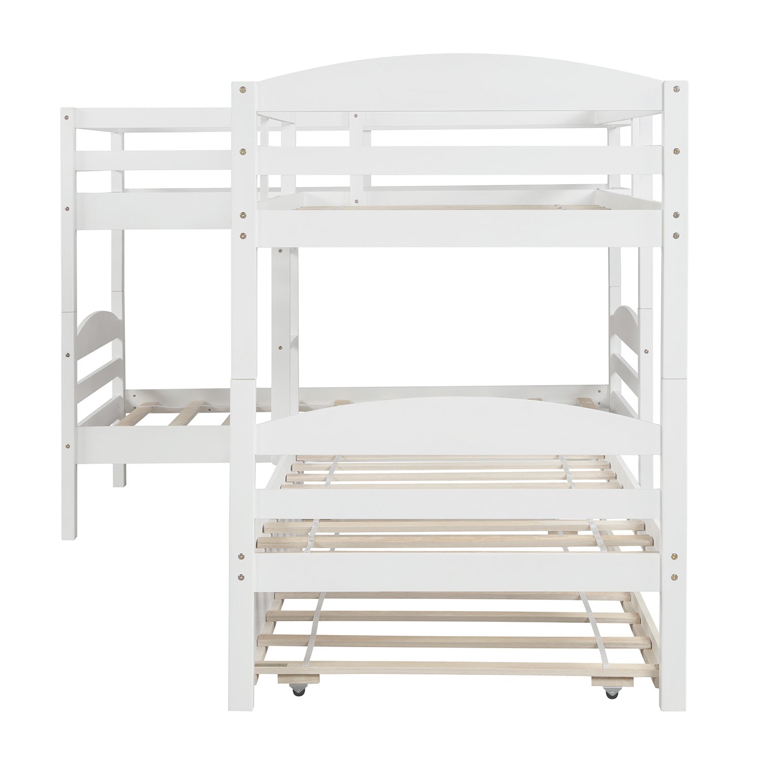 v [Maximized space] Functional and aesthetic, this L-Shaped bunk bed with trundle will enhance any bedroom. A wonderful bunk bed for 5. Fun for your family, sleepovers or your extra sleeping guests at your lake house getaway.