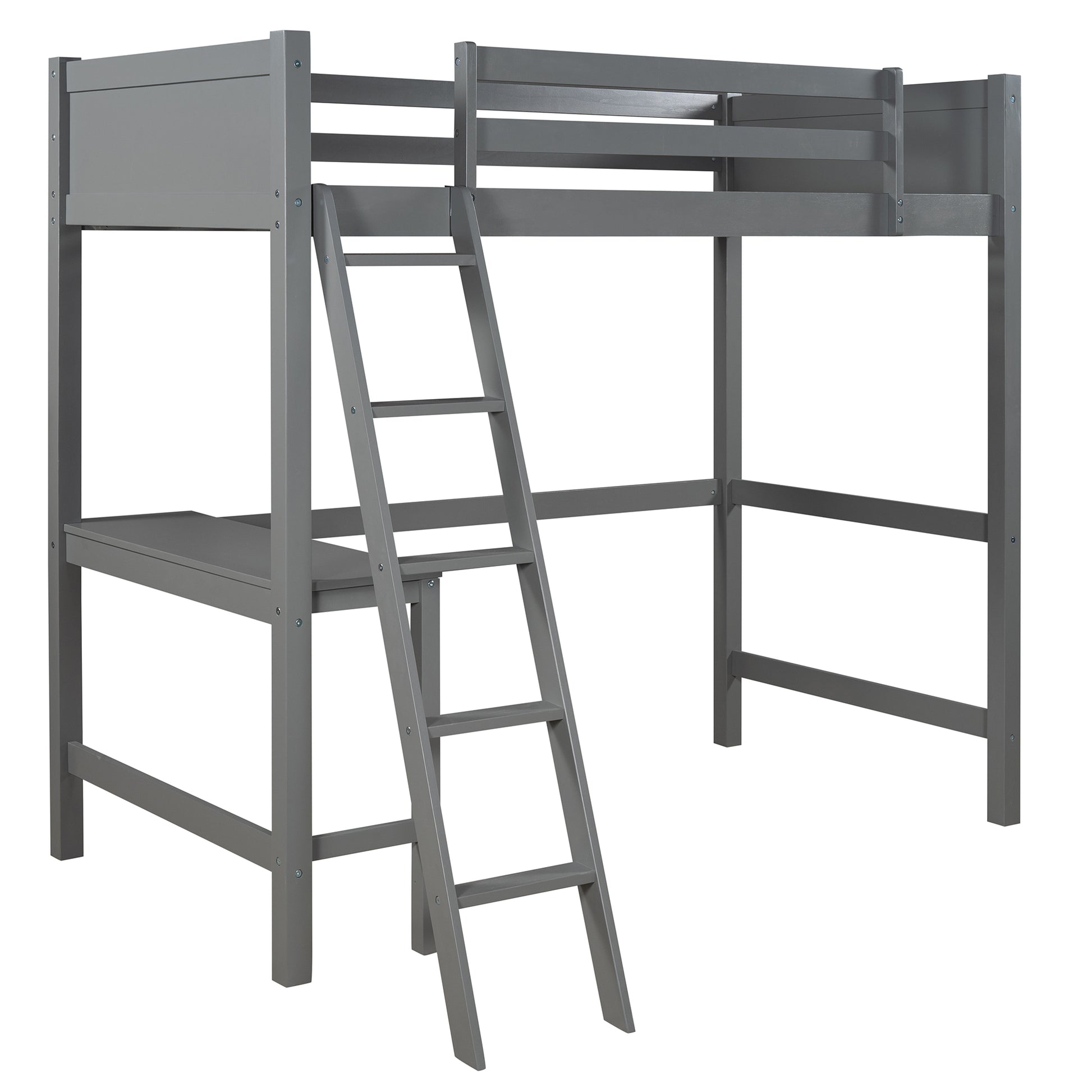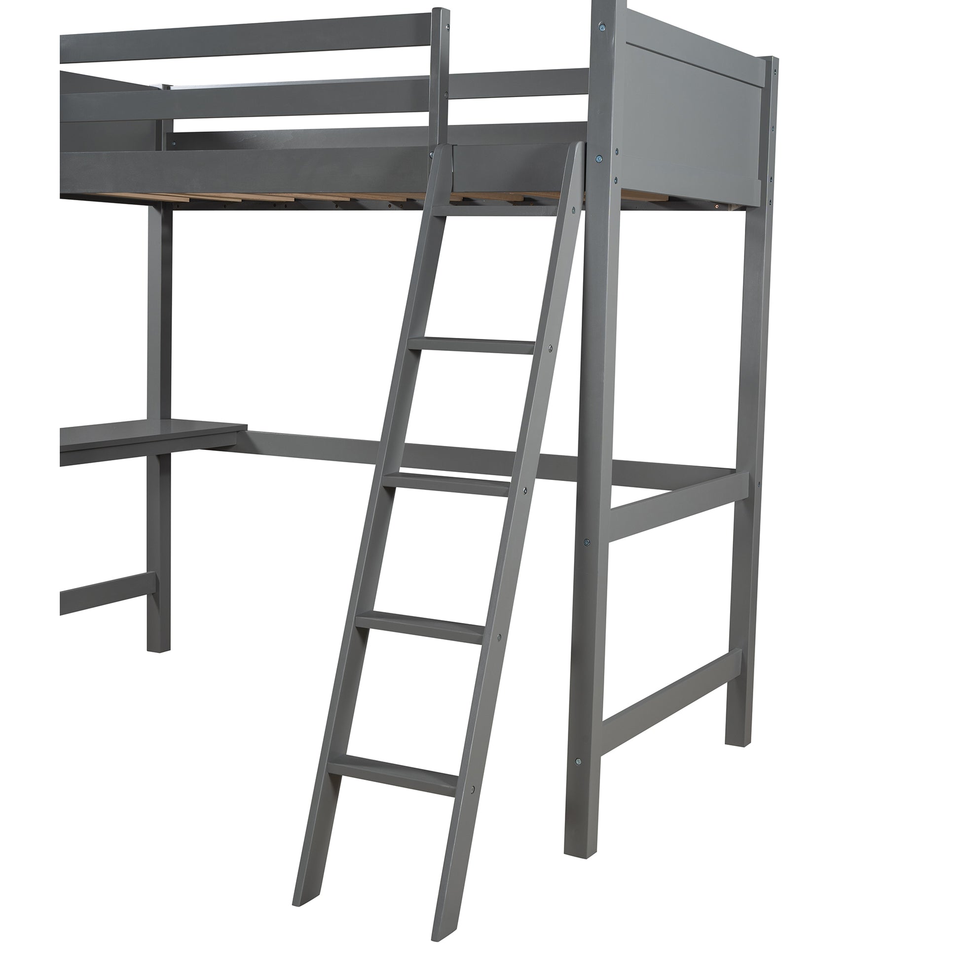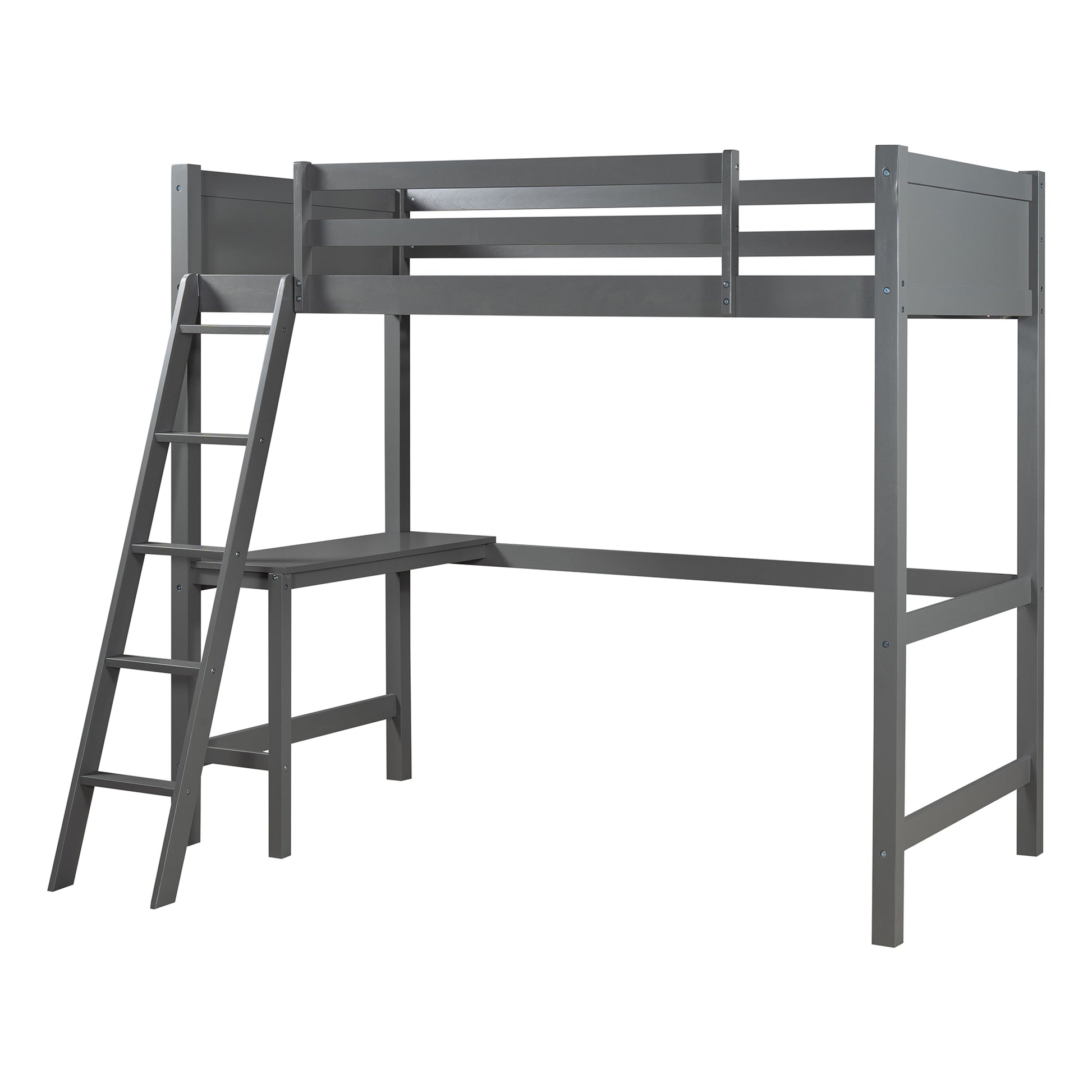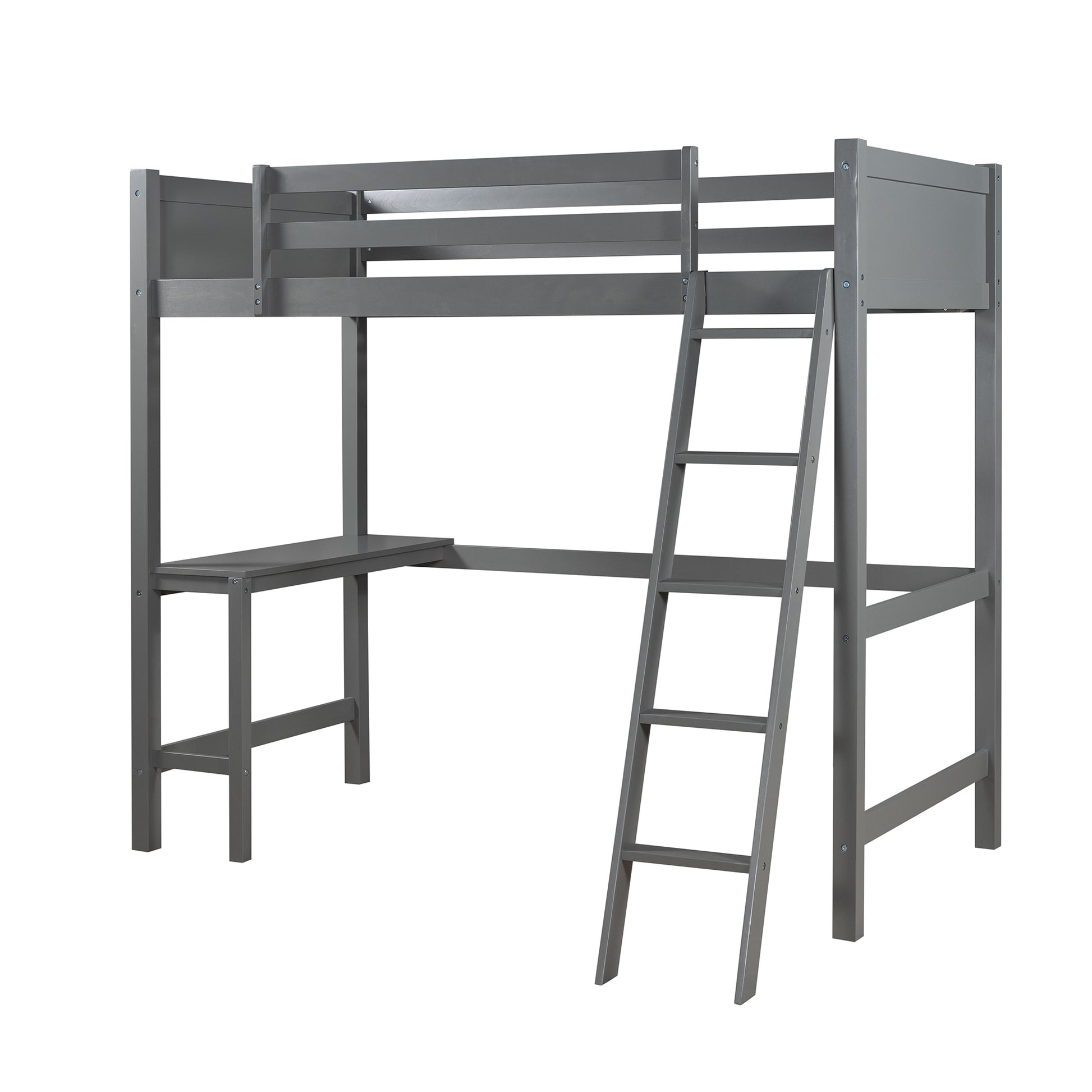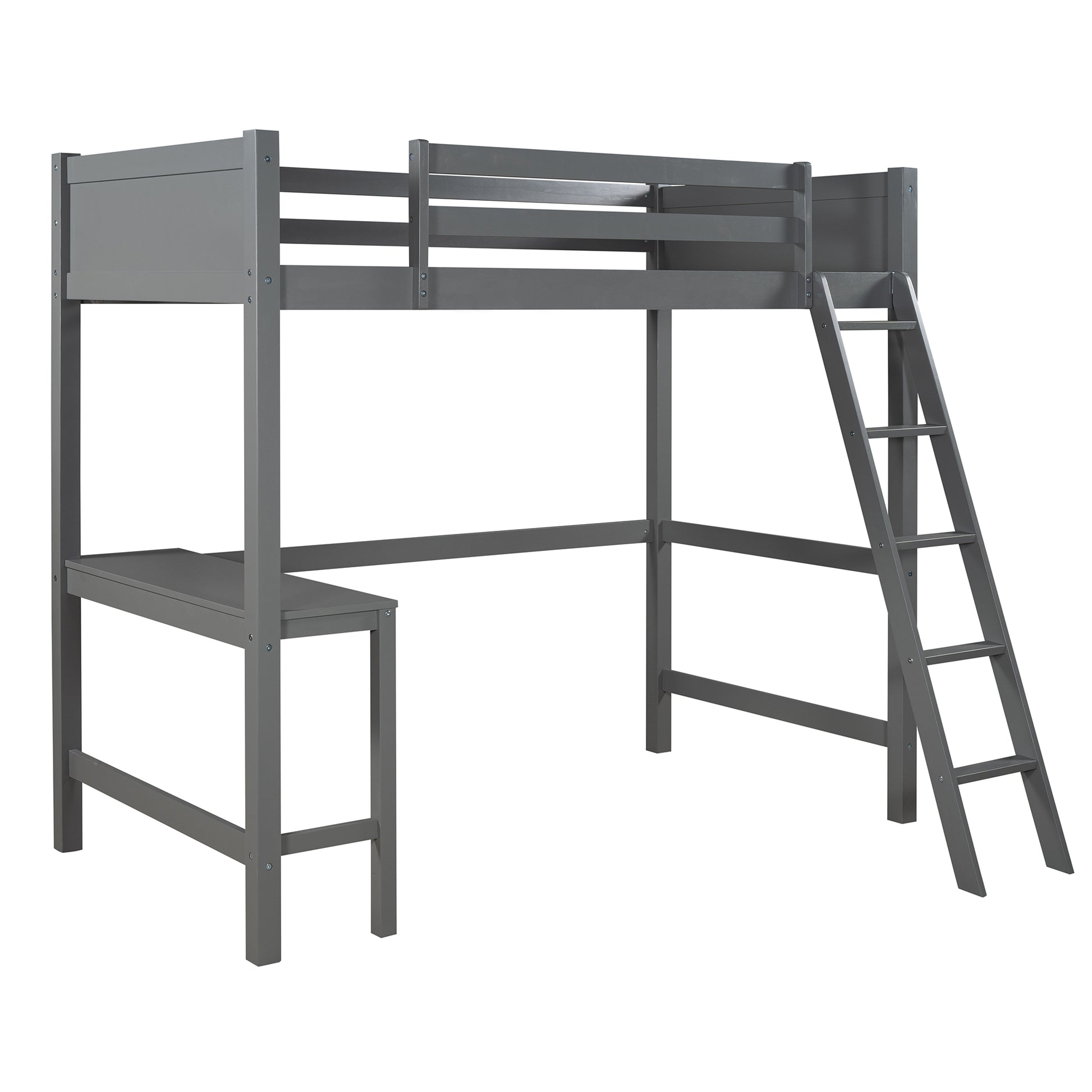 Twin size Loft Bed with Desk and Ladder-Gray