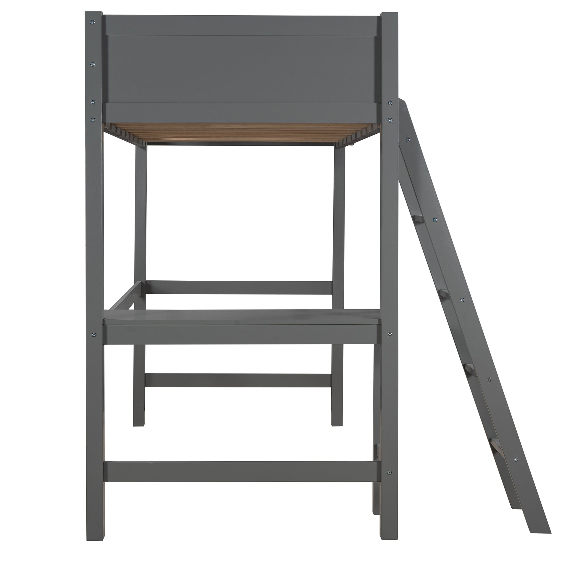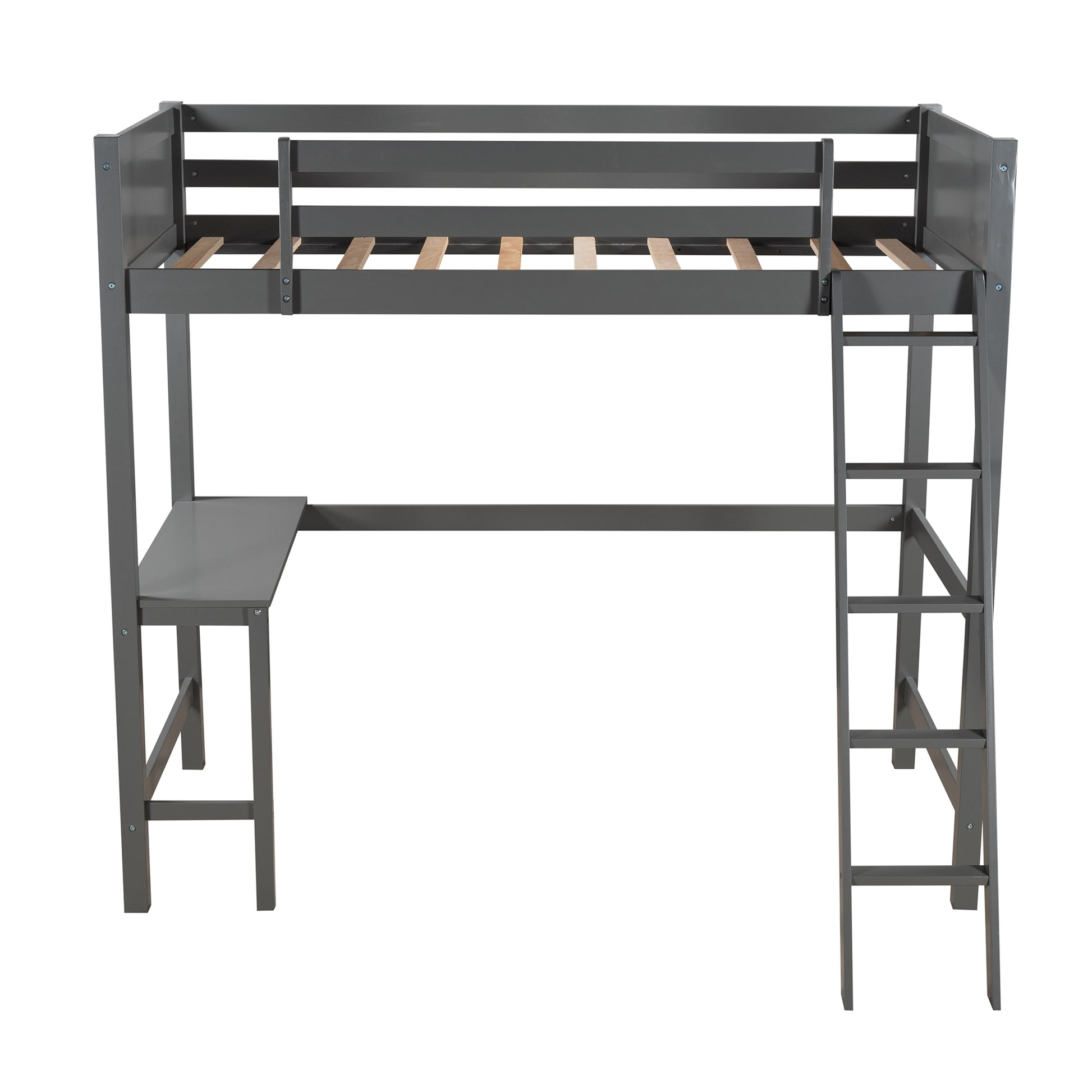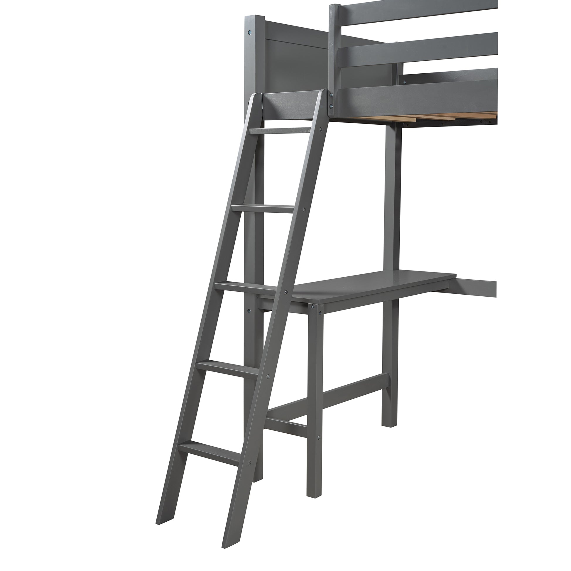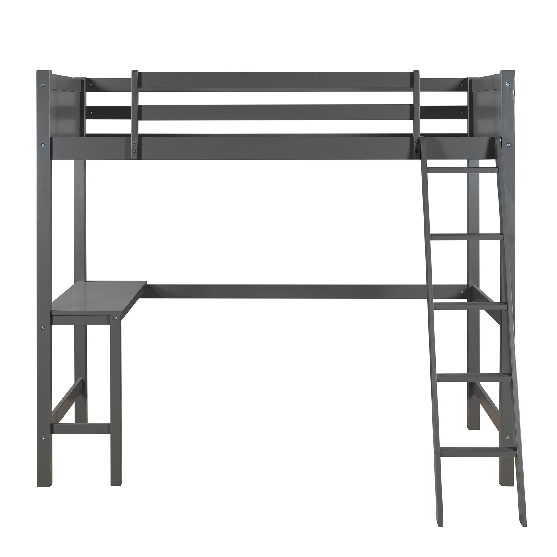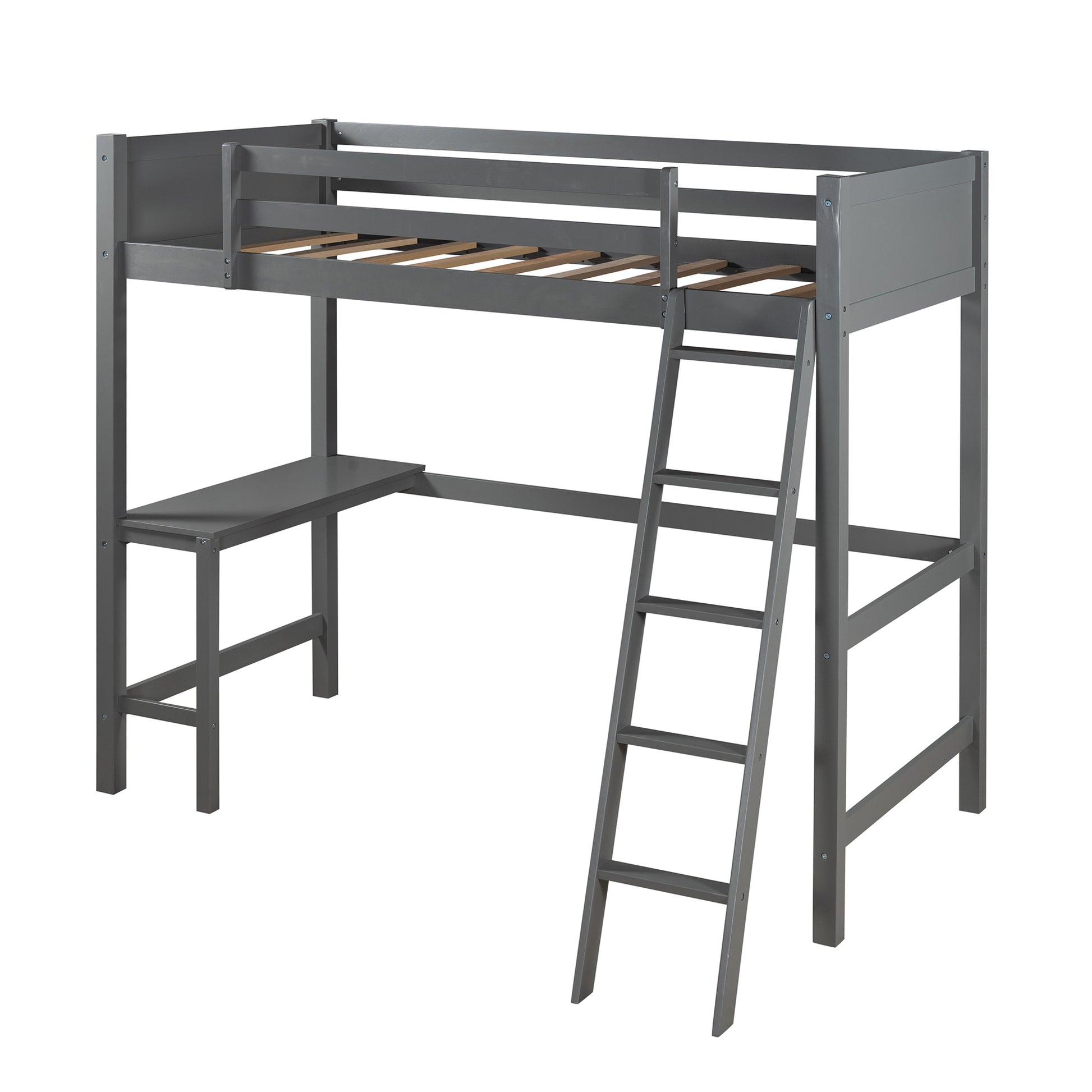 Twin size Loft Bed with Desk and Ladder-Gray