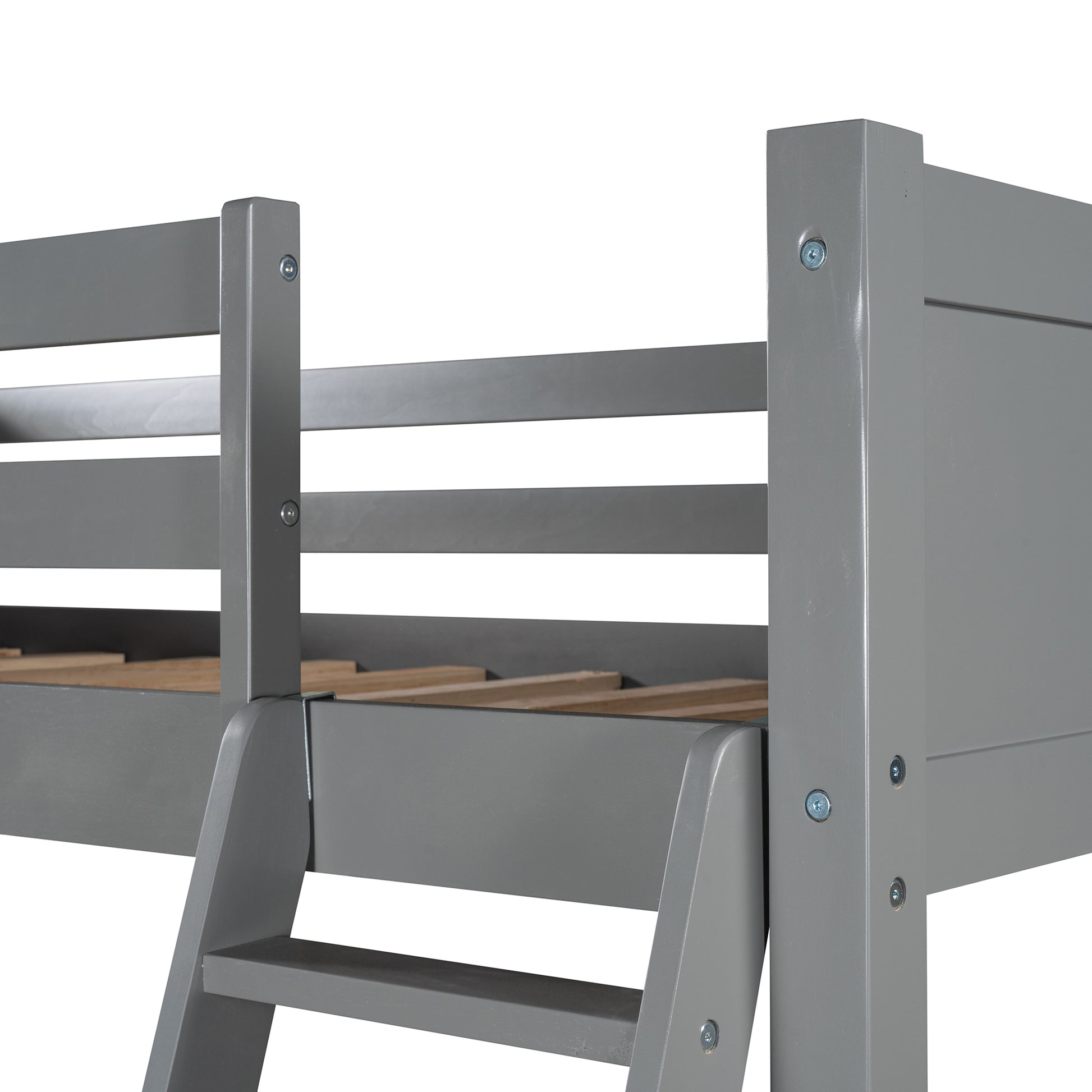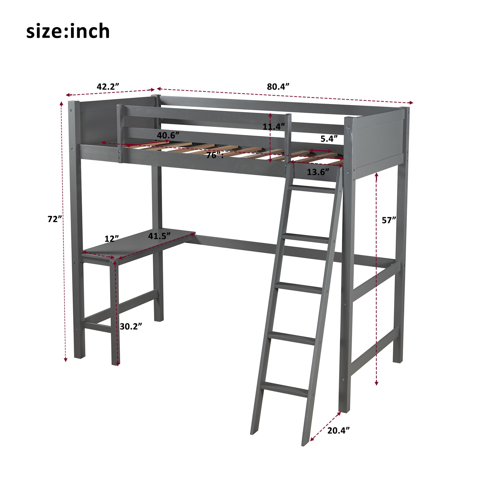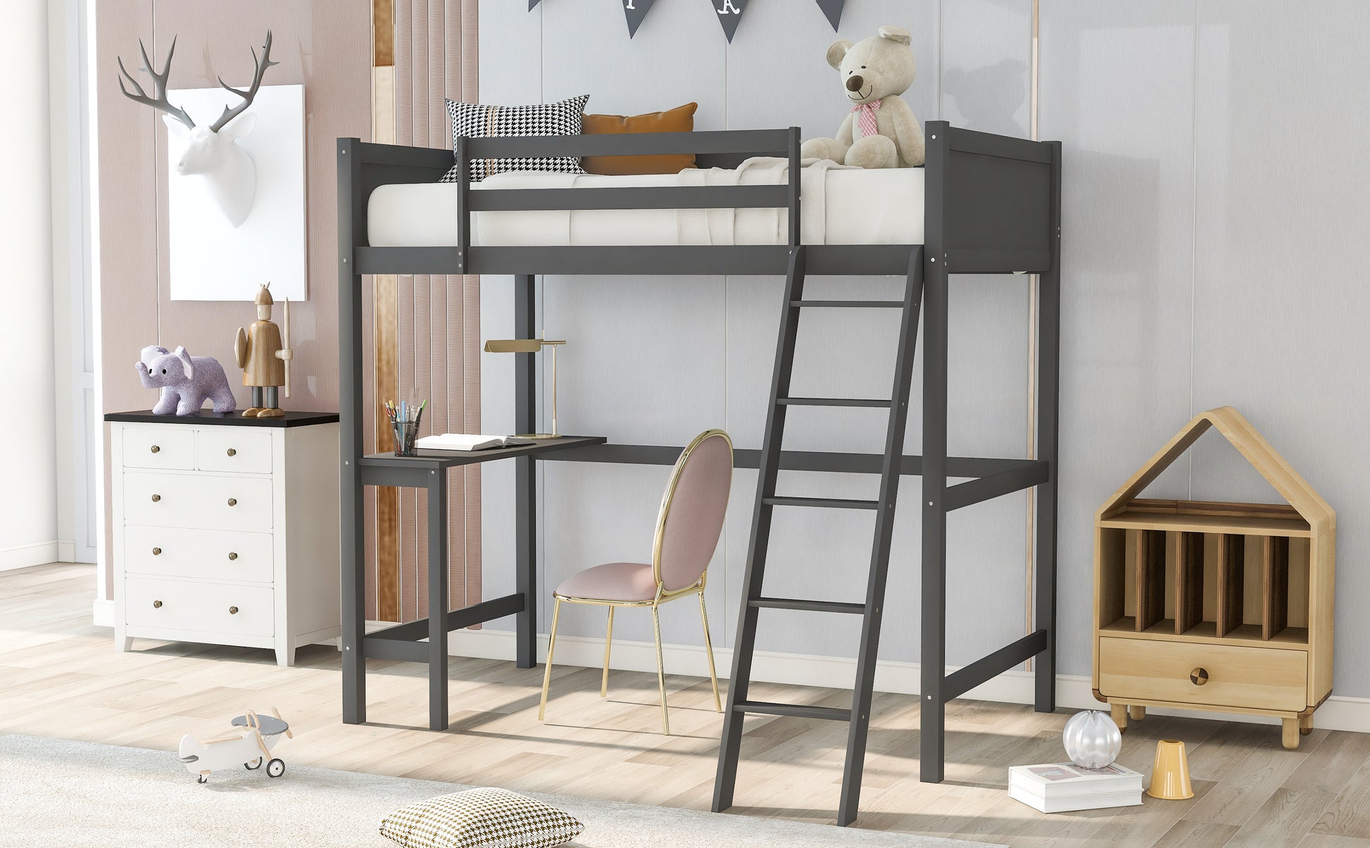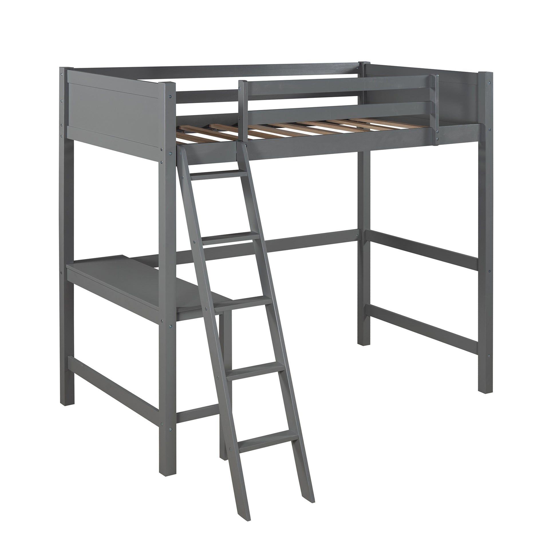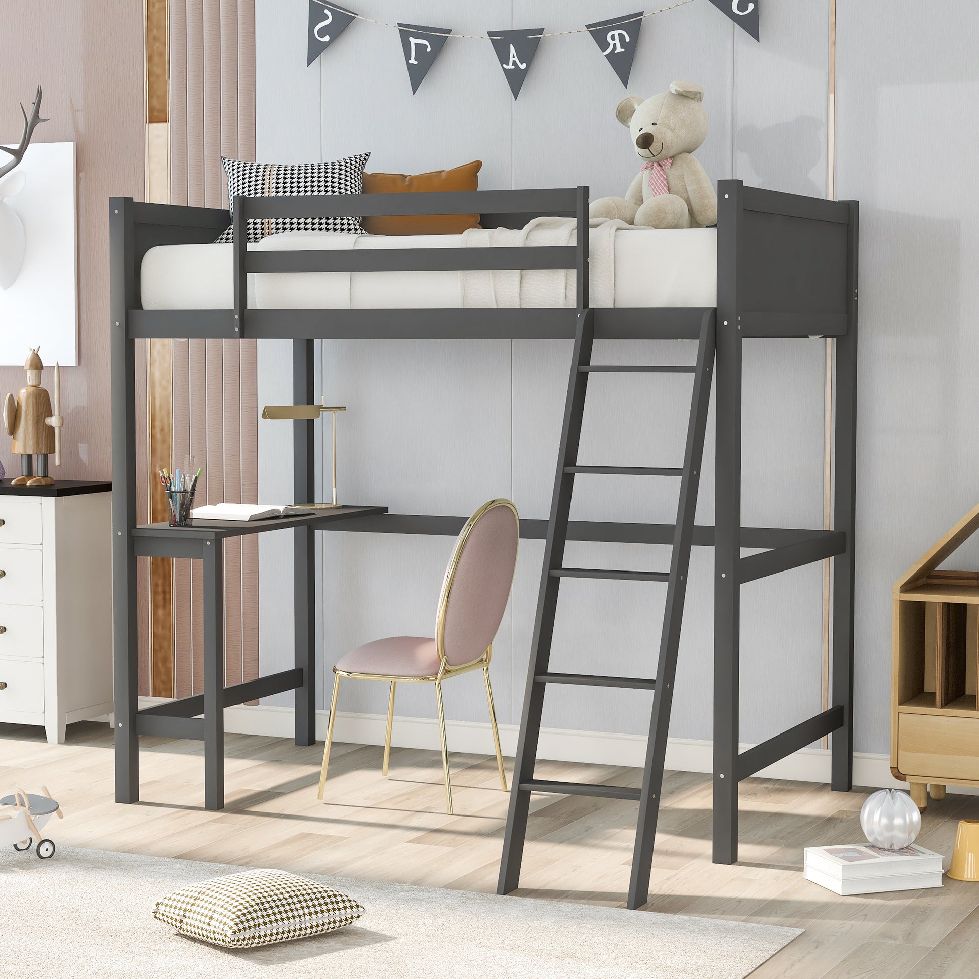 Twin size Loft Bed with Desk and Ladder-Gray