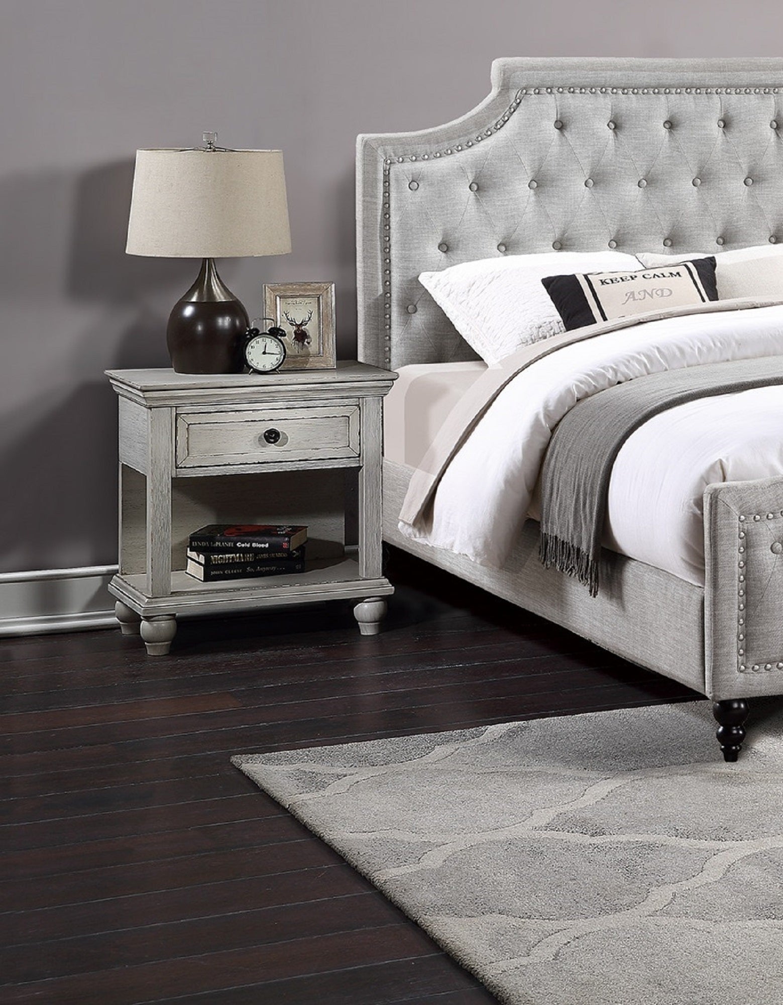 Contemporary Look Stylish Unique Bedroom Matching Nightstand for the bed gives a Formal Look to your Room and provides extra storage space and gives perfect spot for your lamps to be placed.