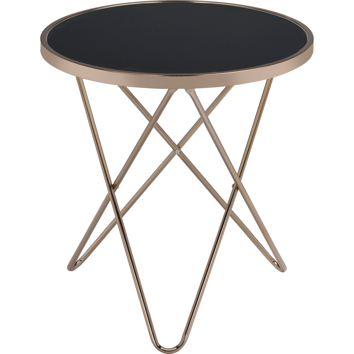 Romance : Update your living room with a functional art piece. The Valora end table uses a mid-century inspired base finished in champagne and supports a framed black glass top. The finish and black glass make for a sophisticated look.