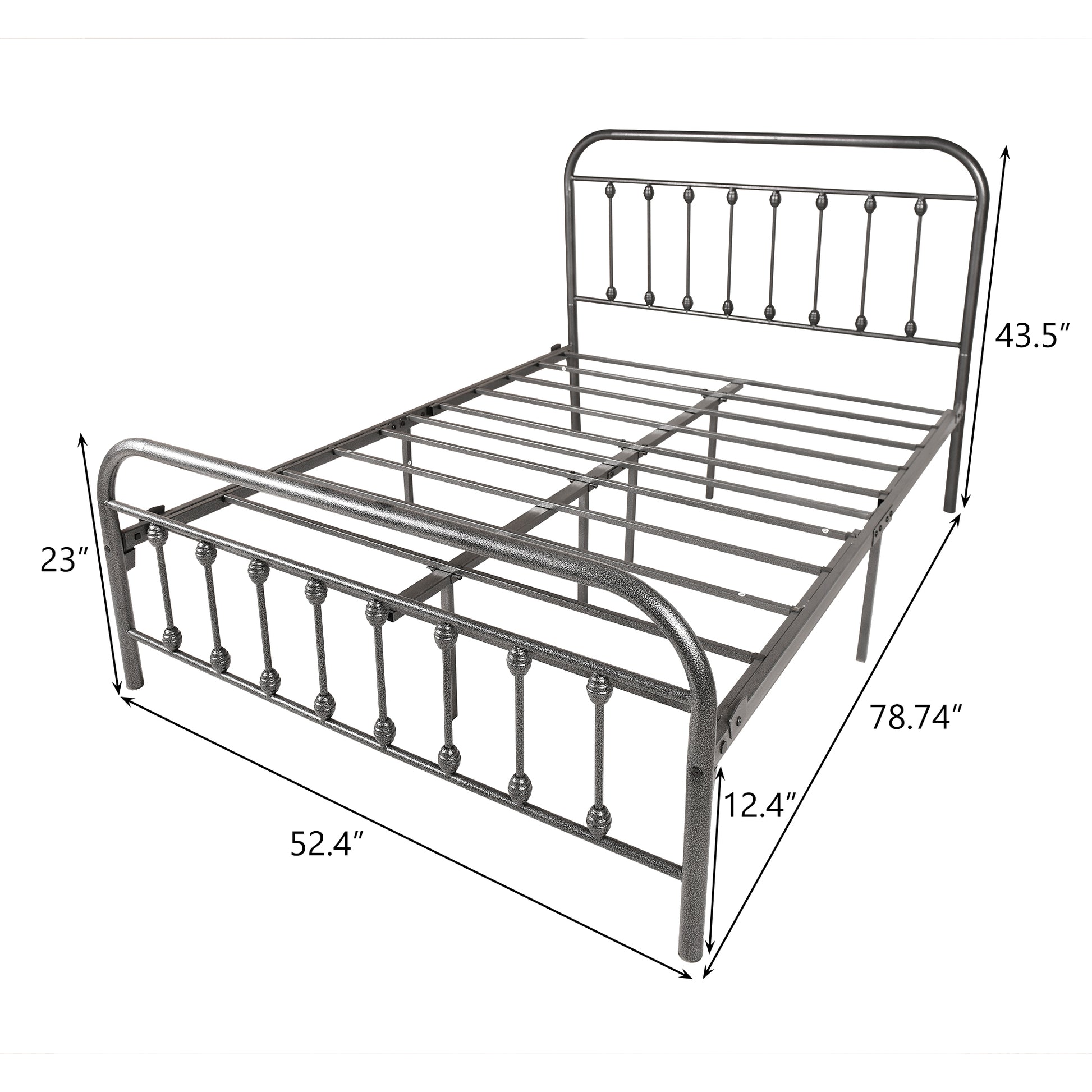 Victorian Vintage Style Platform Metal Bed Frame Foundation Headboard Footboard Heavy Duty Steel Slabs Full Black&Silver