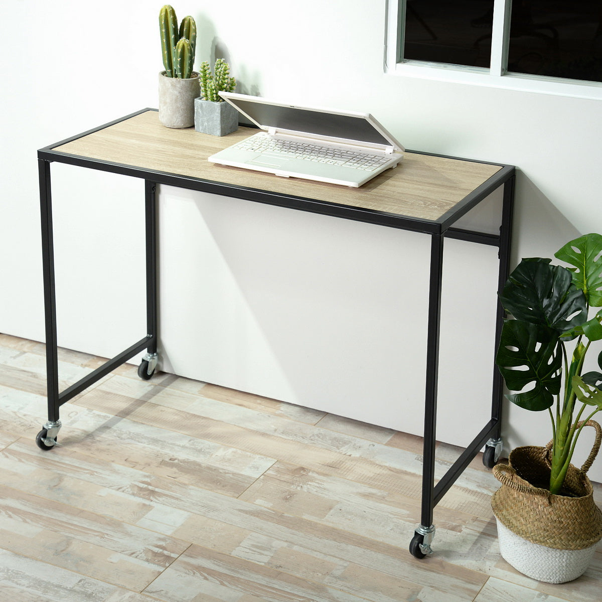 Bring industrial minimalist style to your living room with this unique console table. The frame of this console table is made of MDF and matte black powder-coated metal square tube. The metal structure design will make it more robust and capable of supporting up to 180 pounds of weight (maximum static load capacity). With nylon casters on the metal legs, you can roll it with ease to any room you want to use it in. Add it to your living room, hallway, entryway, or kitchen for an unforgettably sleek look.