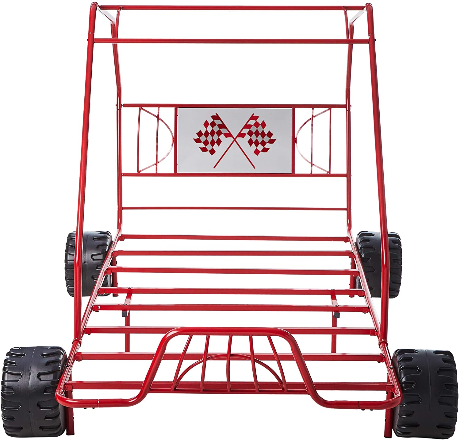Romance : Thrill to your little racer's with the Xander collection. Featuring a fascinating Go Kart design with a racing flag decor headboard and metal tube supporting slat system. The hip design of this bed will bring many years of sleepy happy nights.
